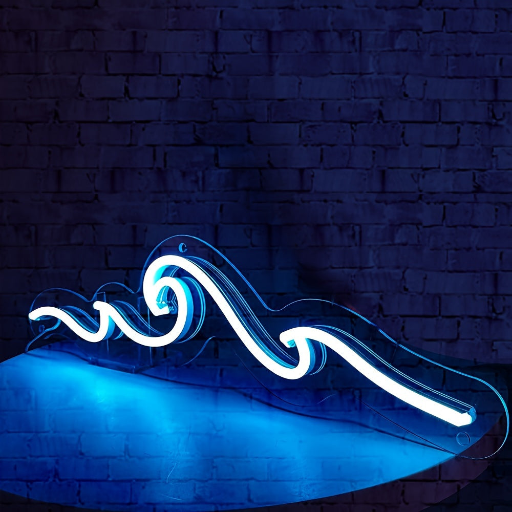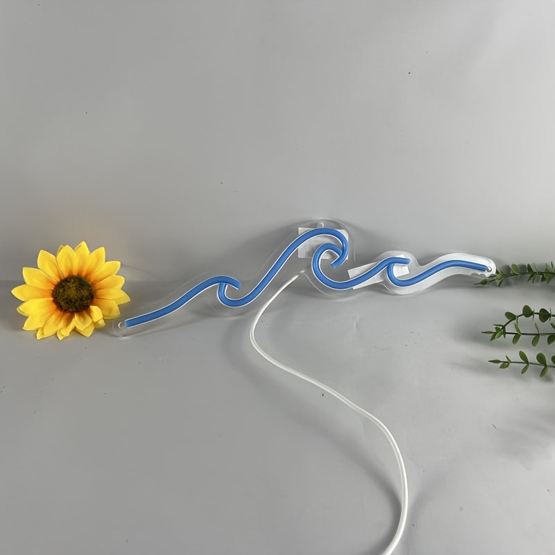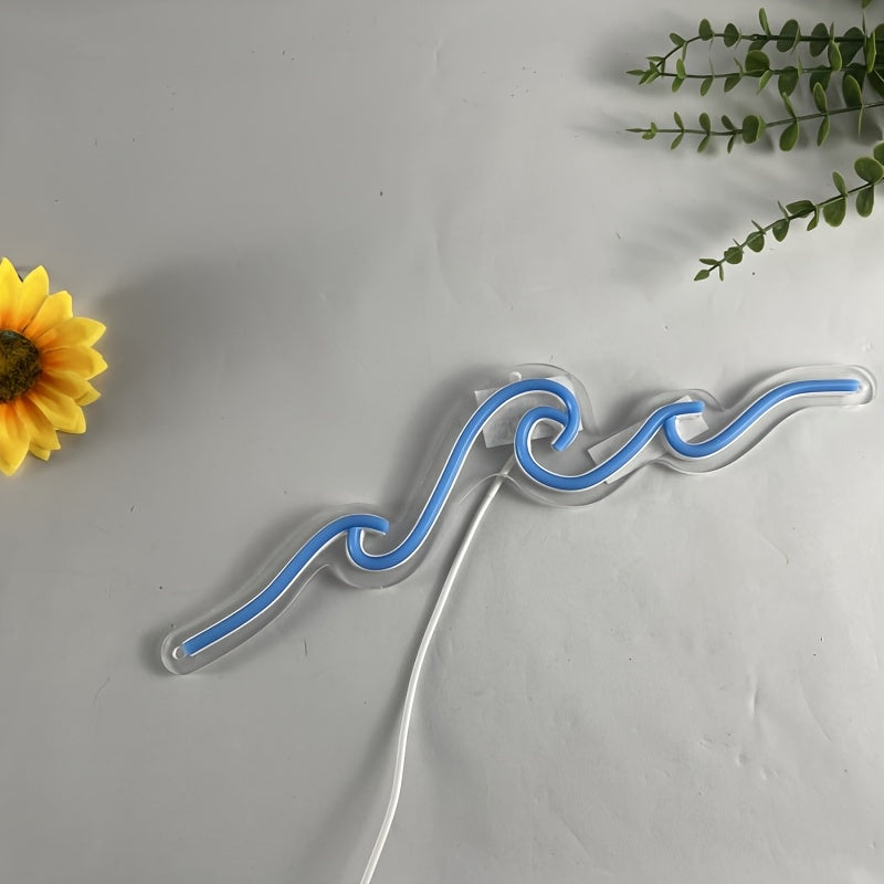 Moviy to'lqin Neon belgisi devor bezak uchun USB bilan quvvatlanadigan sozlanadigan yorqinlik va tugma boshqaruvi bilan