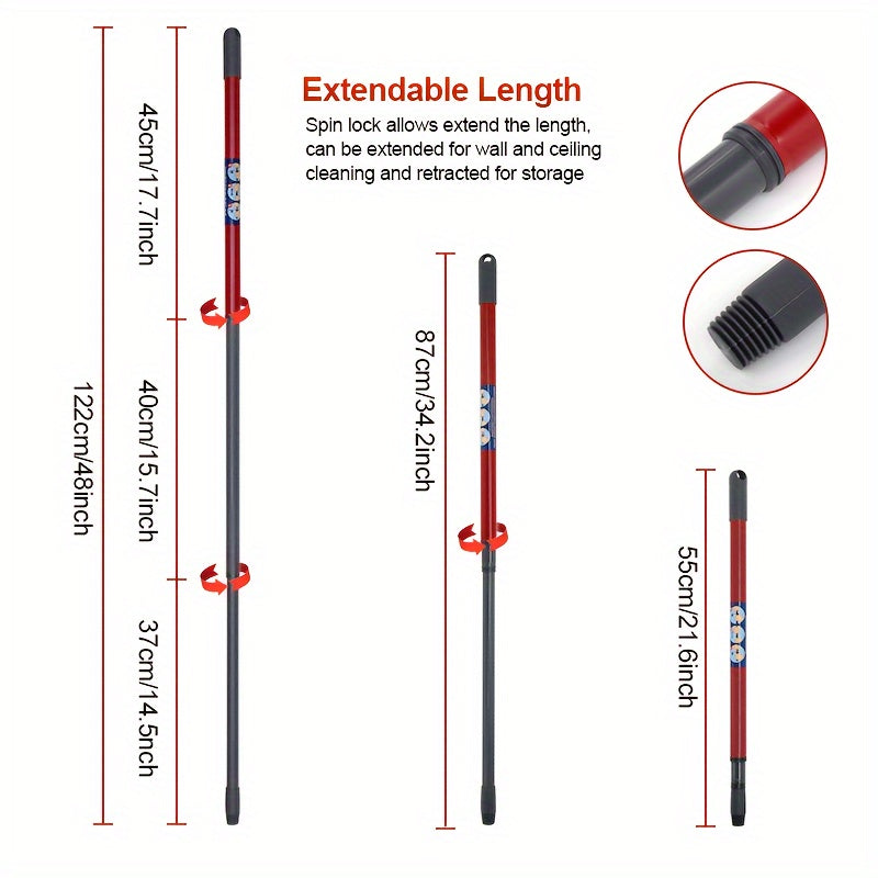 "Ishonchli mustahkamlik va eng yaxshi tozalash qulayligi uchun GHUICAN 3-bo'lakli cho'ziladigan mopa tutqichini oling - Mustahkam temir konstruktsiyasi, 48 dyuymli mop tayoqchasi va zarur tozalash asboblari bilan ta'minlangan."