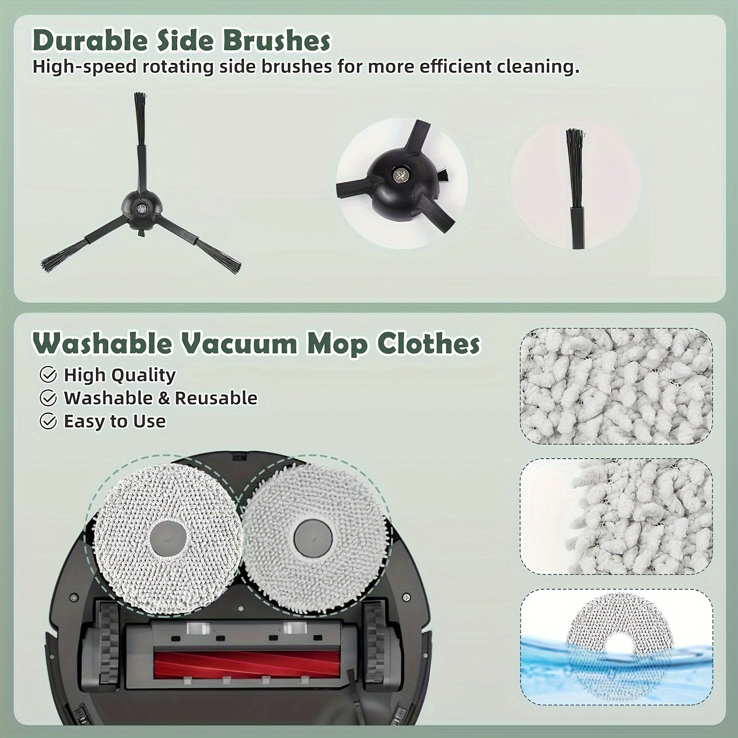 Robot tozalash uchun aksessuarlar to'plami 15 ta, asosiy rulonli cho'tka, filtrlash, chang sumkasi, mop mato