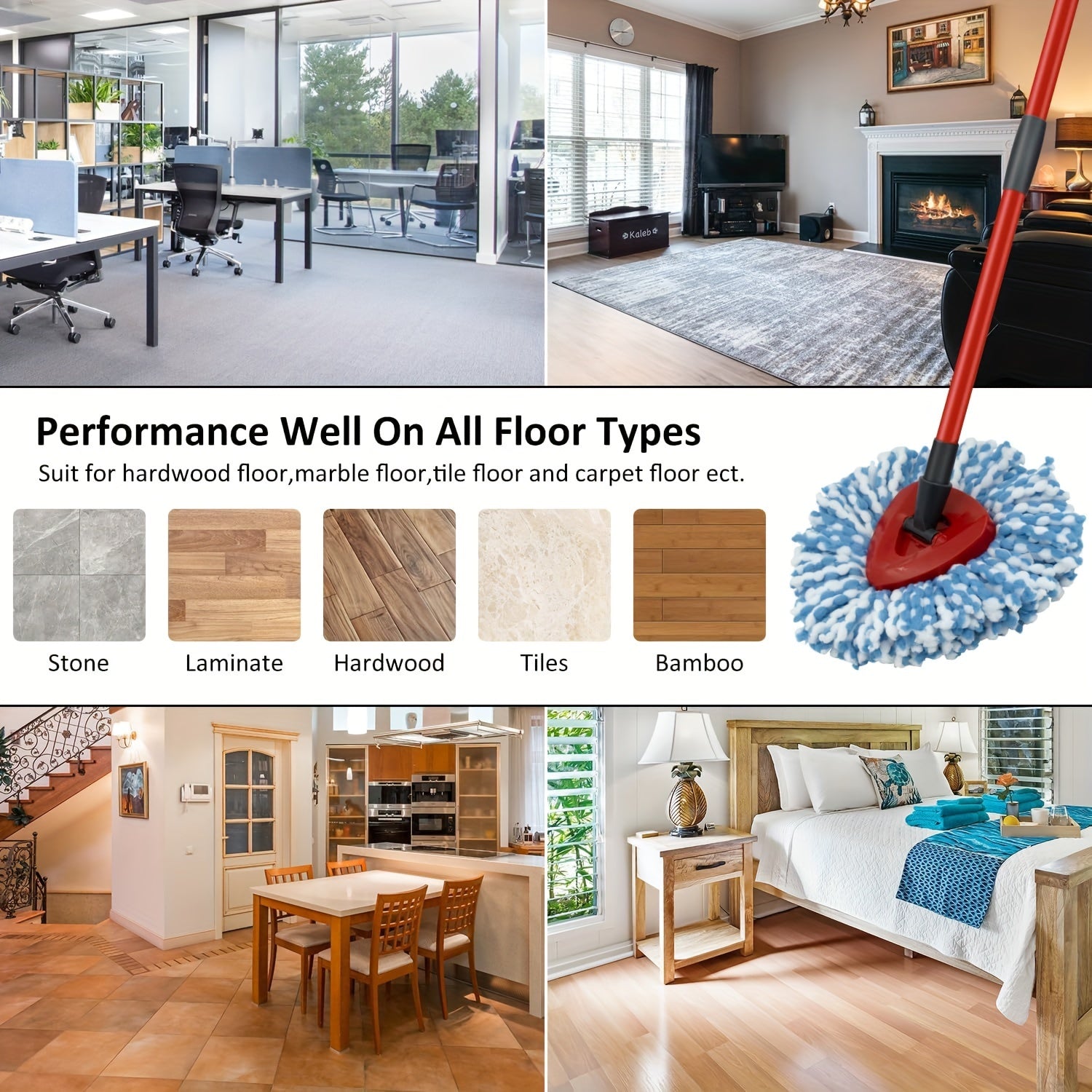 Ikkita Microfiber Spin Mop Refill Set oling, mustahkam 4-bo'lakli temir tutqichi bilan, O-Cedar EasyWring va RinseClean 2-Tank tizimlari bilan mos keladi. Tutqich 76.2 sm dan 147.32 sm gacha sozlanishi mumkin, bu esa samarali pol tozalashni ta'minlaydi.