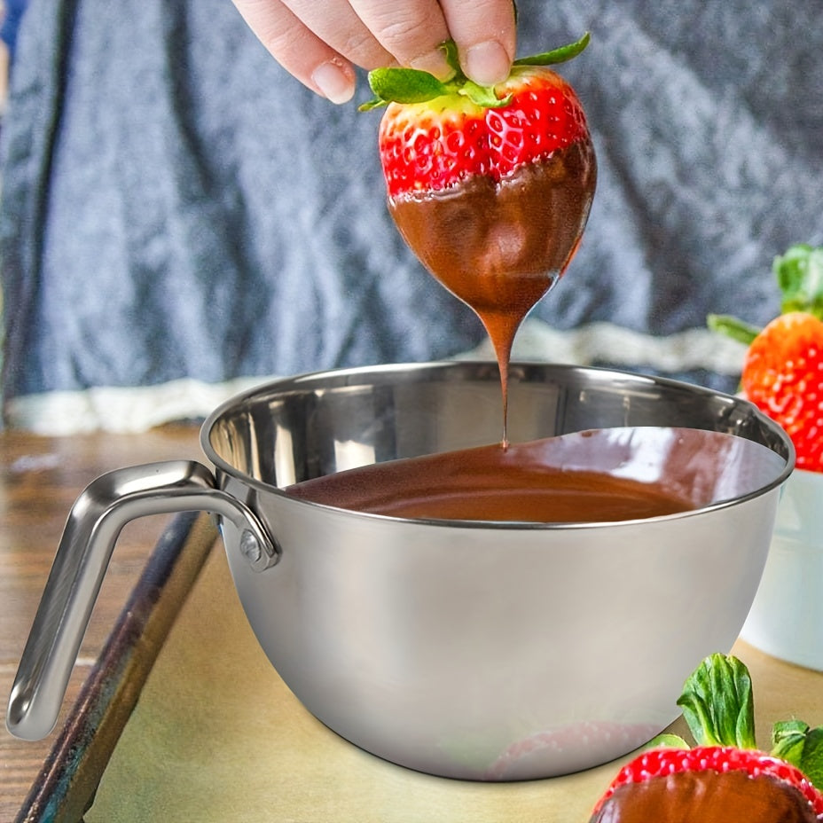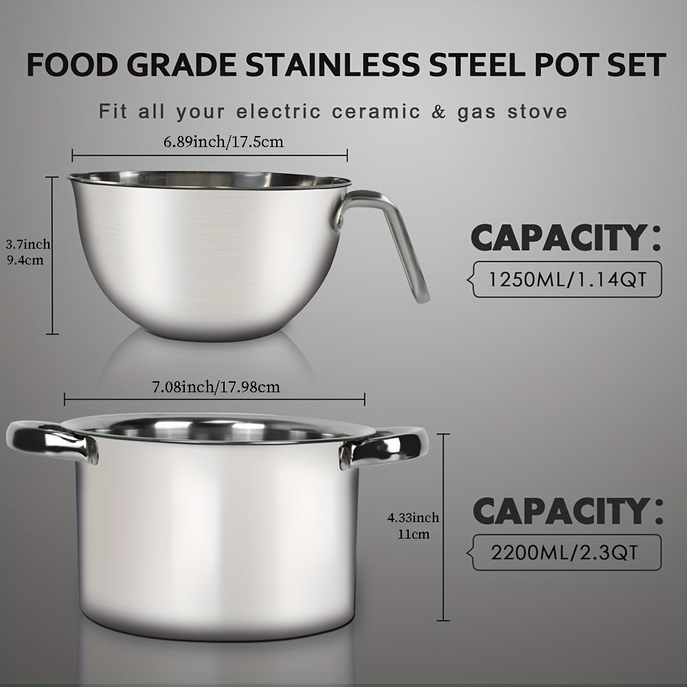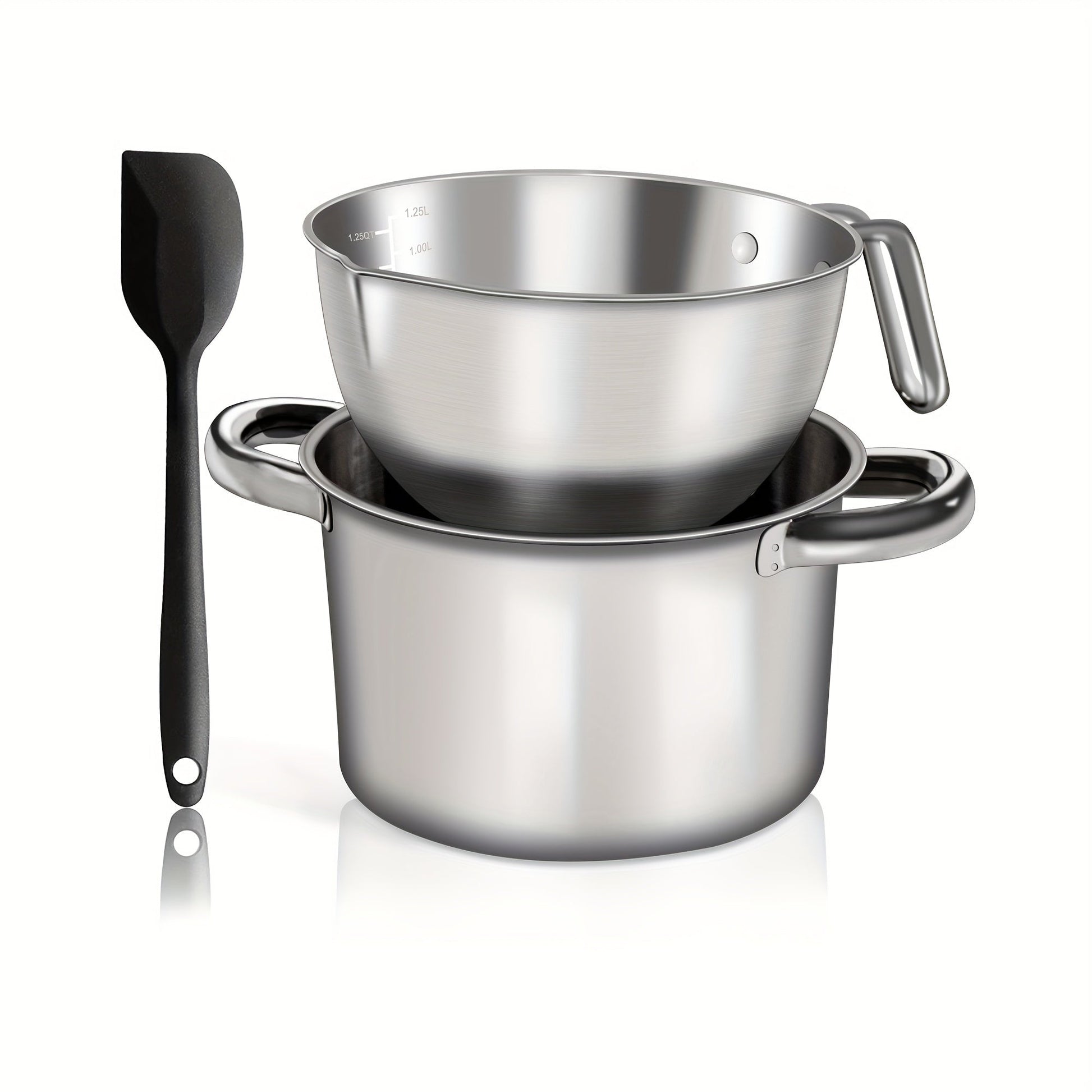 Turli moddalarni eritish uchun ikkita idish oling: shokolad uchun 1250ML/1.1QT aralashtirish idishi va shokolad, shirinlik, sham, sovun, mum va boshqa oshxona ehtiyojlari uchun silikon spatula bilan 2200ML/2QT 304 zanglamaydigan po'latdan yasalgan idish.