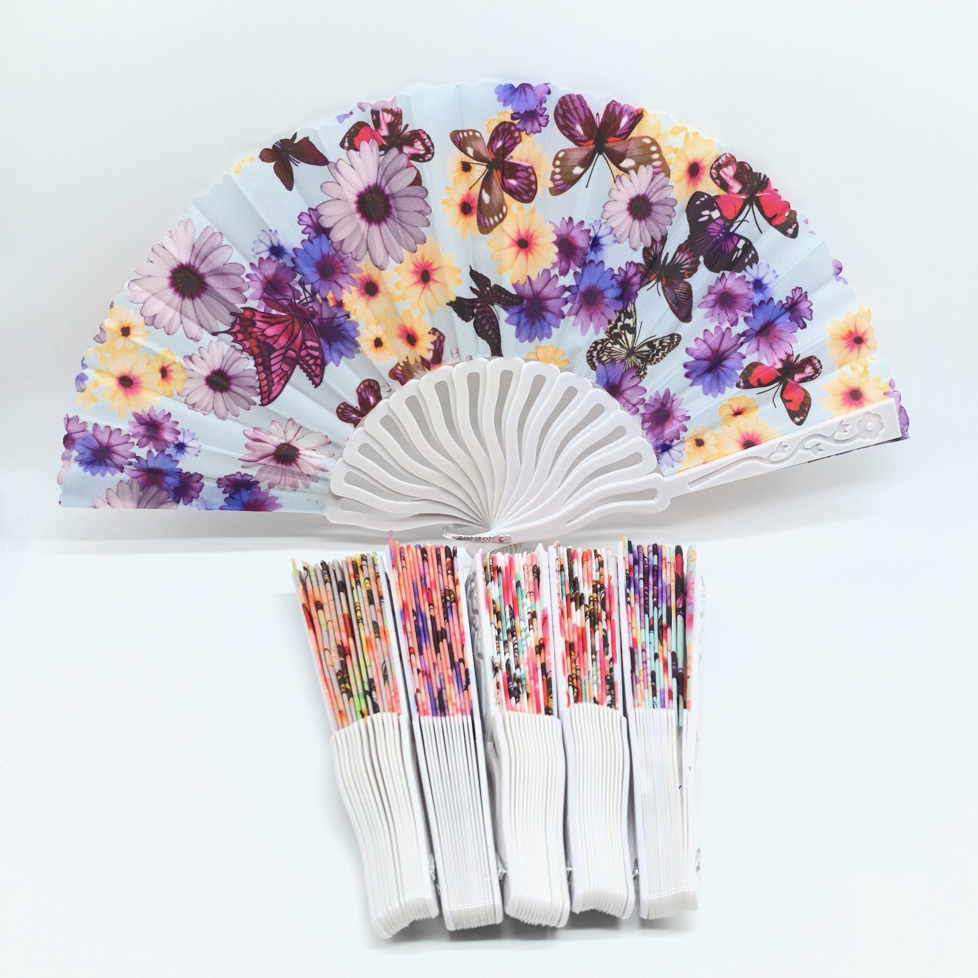 6 yoki 12 ta nozik kapalak va gullar dizayni bilan bezatilgan elegant qog'oz fanatlarni qo'lga oling. Sifatli linen materialdan tayyorlangan bu qo'l fanatlari fotosessiyalar uchun va yozda qulay bo'lish uchun juda mos keladi.