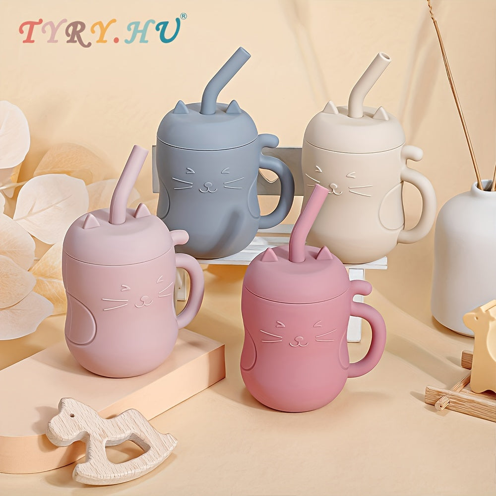 Kichkina bolalar uchun oziqlantirish kubogi Kawaii Cat, suyuqlik o'tkazmaydigan, BPAsiz, quvurlar va to'xtatuvchi bilan