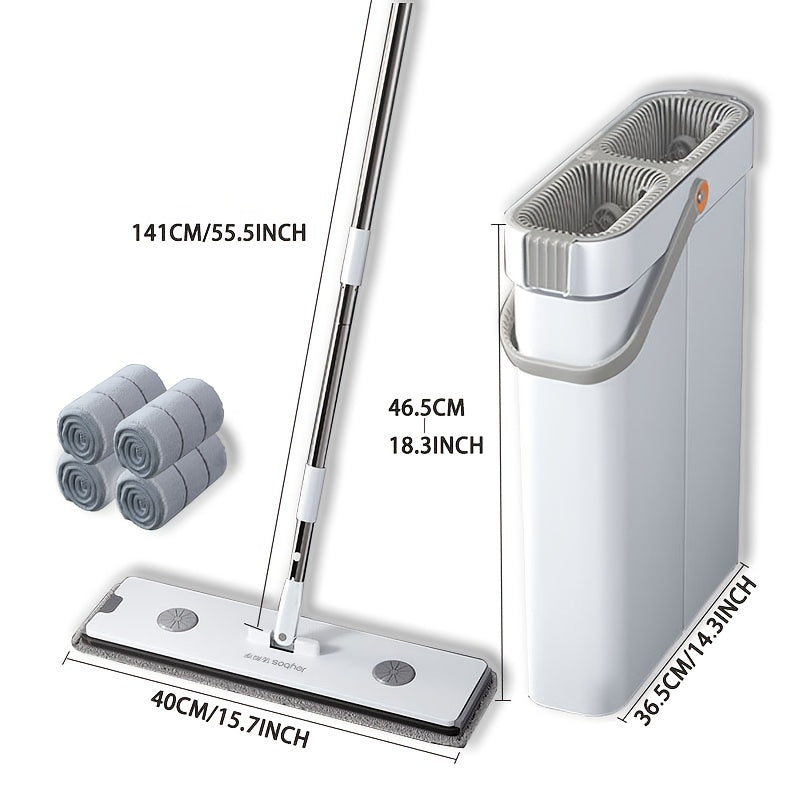 Avtomobil va shisha tozalash uchun aylanadigan boshli uzun pole mop va kova to'plami