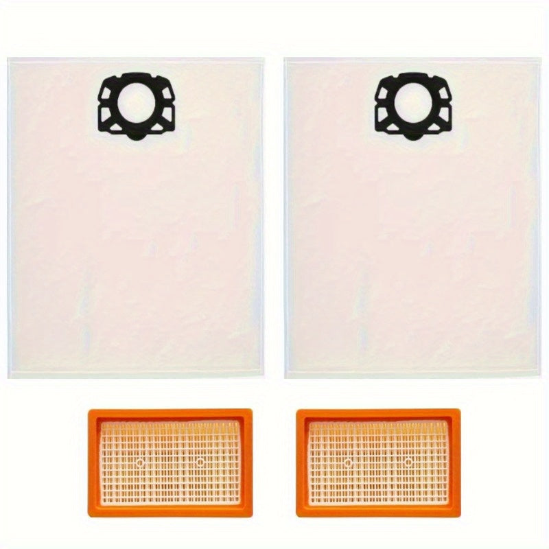 Karcher mos keladigan 4 dona vakuum aksessuarlar to'plamini qo'lga oling, bu to'plam 2 ta HEPA filtr va 2 ta chang sumkasini o'z ichiga oladi. Ushbu to'plam WD4, WD5, MV4, MV5 va MV6 modellari uchun mo'ljallangan.