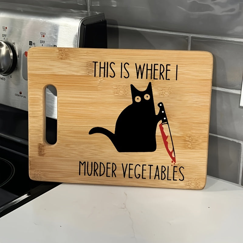Ushbu noyob va kulgili Killer Cat o'yma bambuk kesish taxtasini qo'lga kiritib, do'stlaringiz uchun ijodiy uyga ko'chish sovg'asi yoki Halloween sovg'asi sifatida foydalaning. Oshxonangizga hazil tuyg'usini qo'shish uchun mukammal!