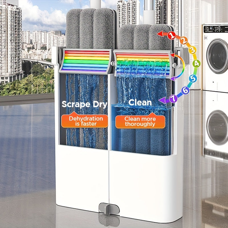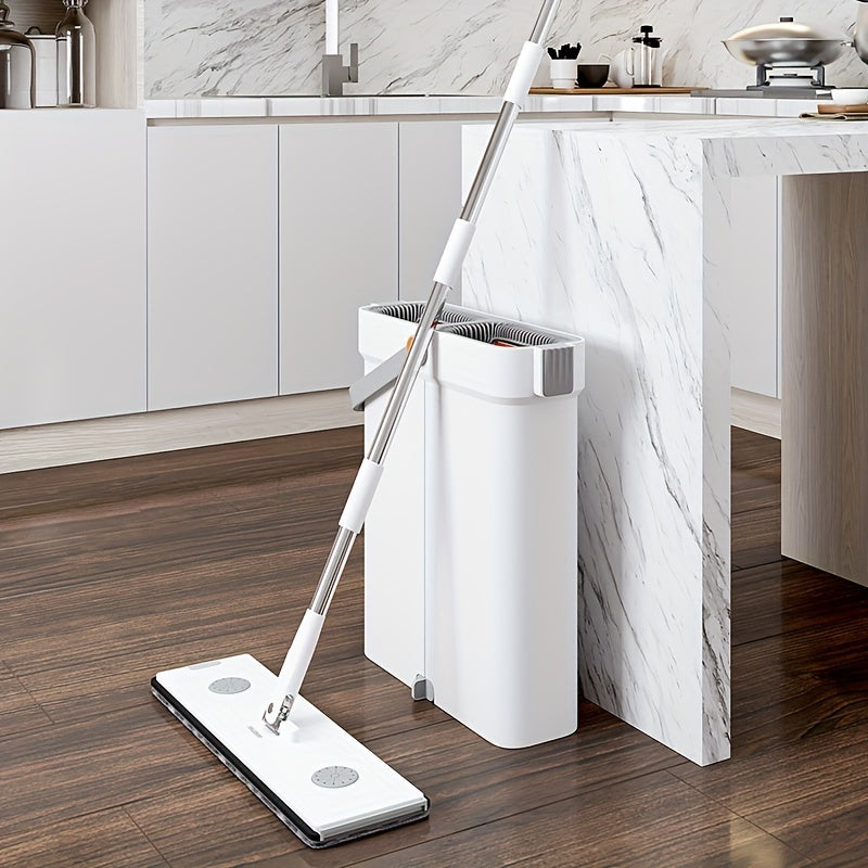 Professional tekis mop to'plami 360° aylanuvchi bosh, yuviladigan gubka va mato bilan