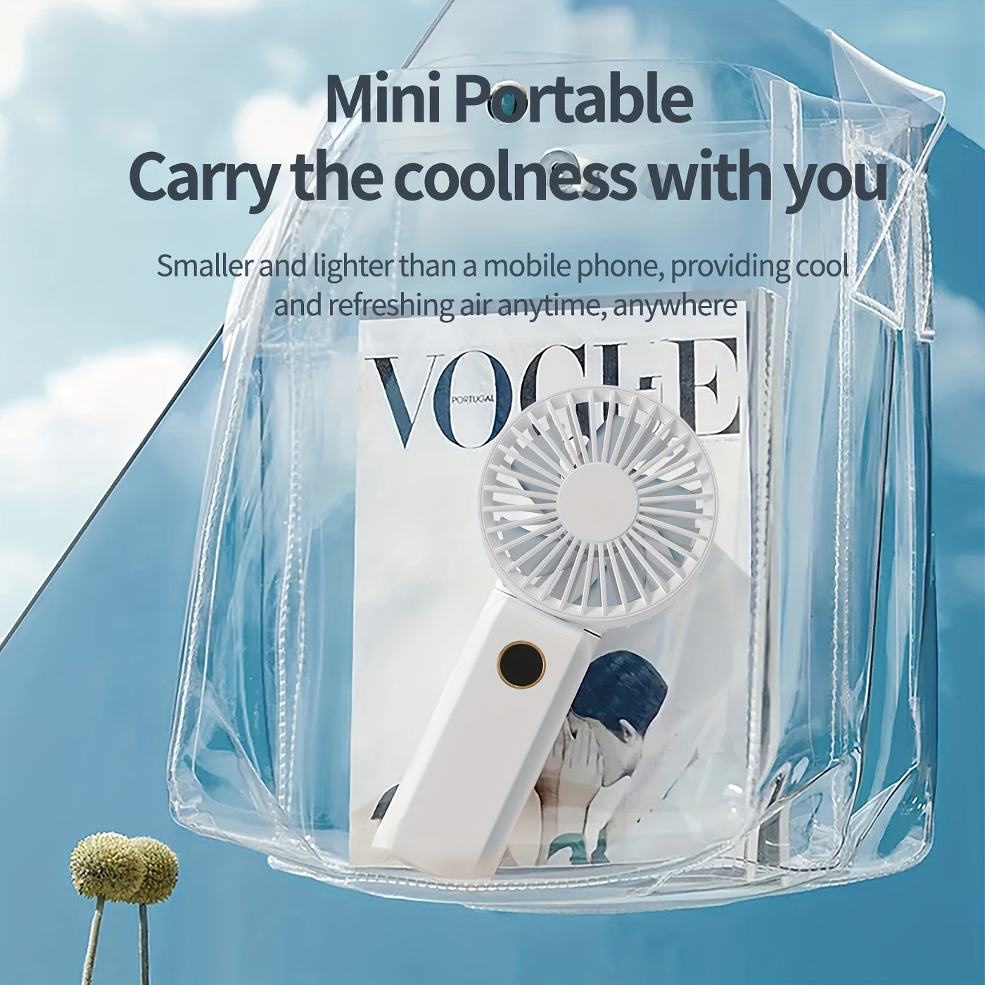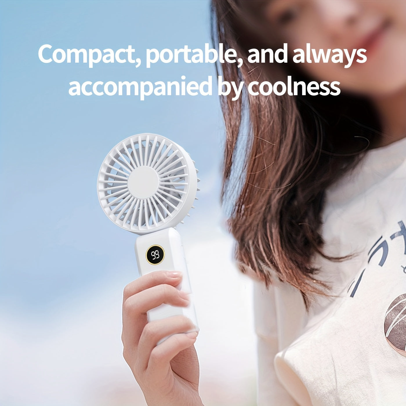 Raqamli displeyli portativ mini ventilyator, USB bilan qayta zaryadlanadigan, bukiladigan tutqich