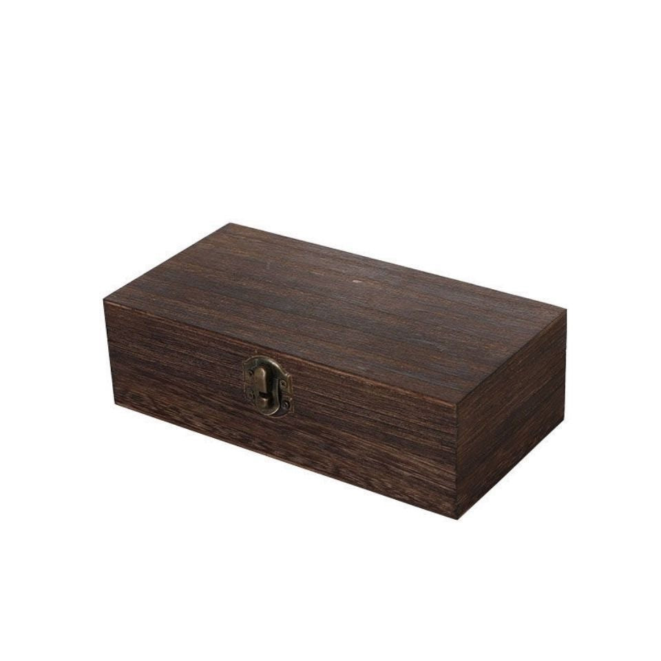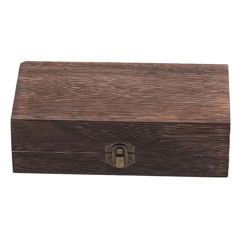 Vintage yog'och sovg'a qutisi, ko'mir bilan kuydirilgan detallari bilan, zargarlik buyumlari va soatlar uchun