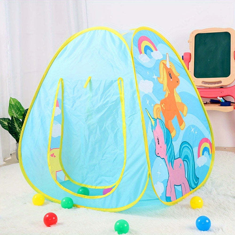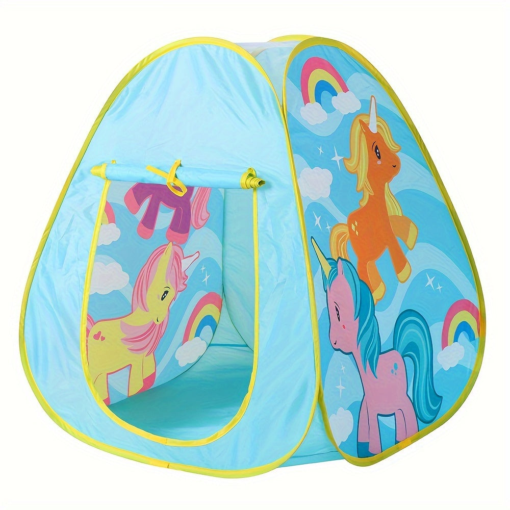 'Gigatent Youngsters' qopqoqli pop-up o'yin tenti - yengil ko'k malika qal'asi, ot va kamalak dizayni, ichki/tashqi qiziqarli o'yin uchun po'lat ramka, yumshoq polyester material, tasavvuriy o'yin