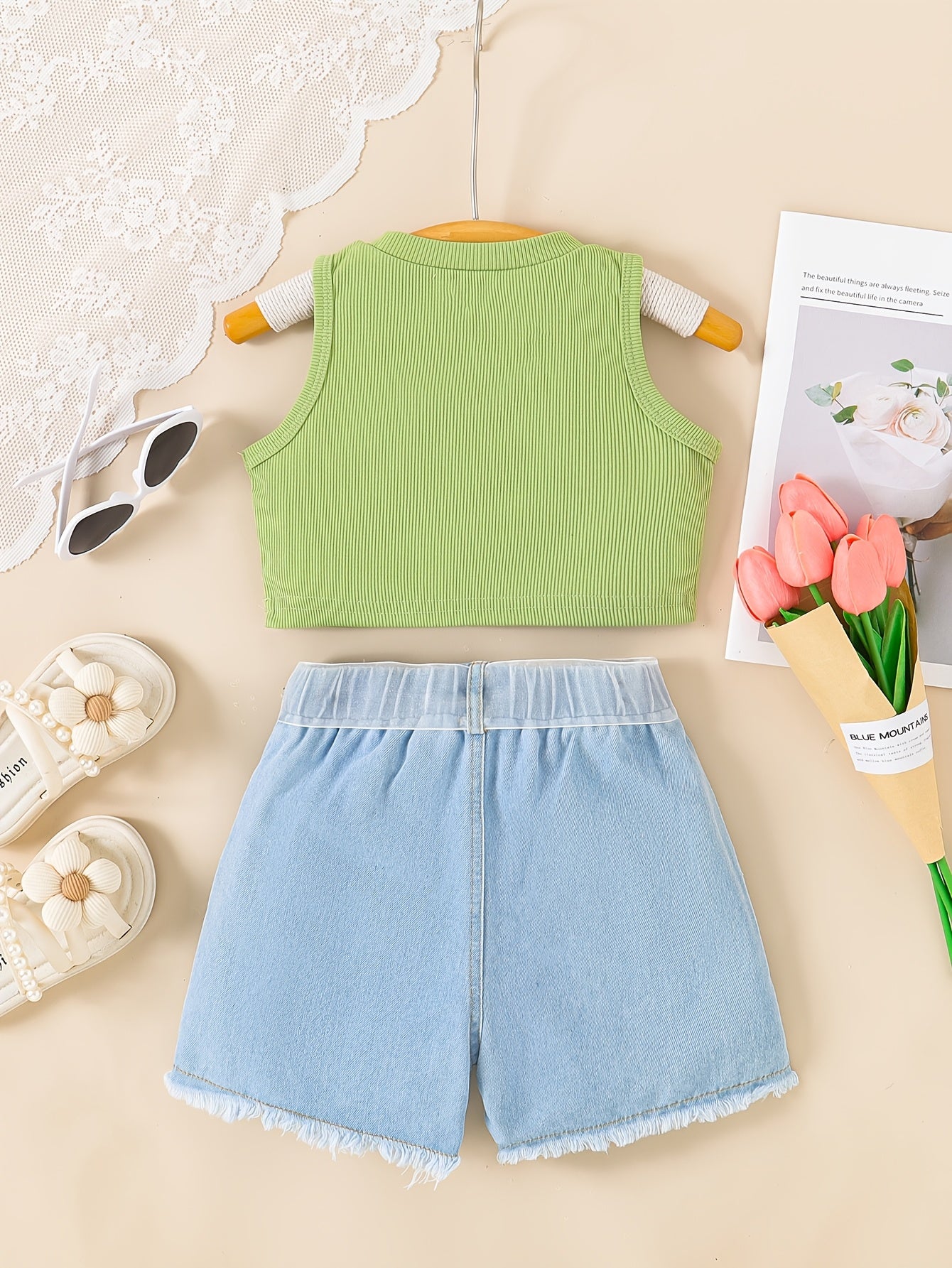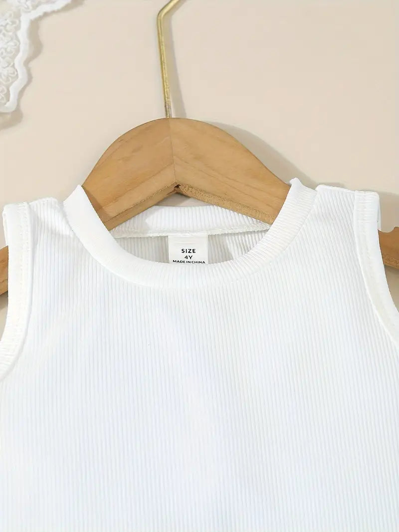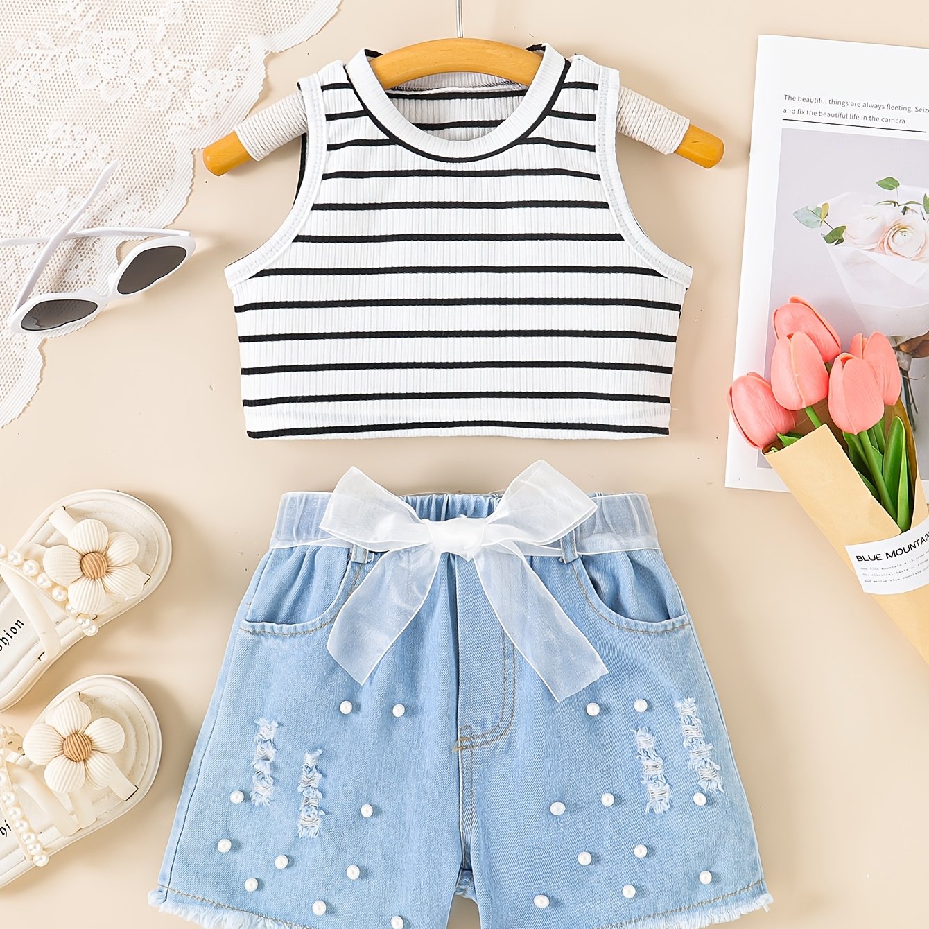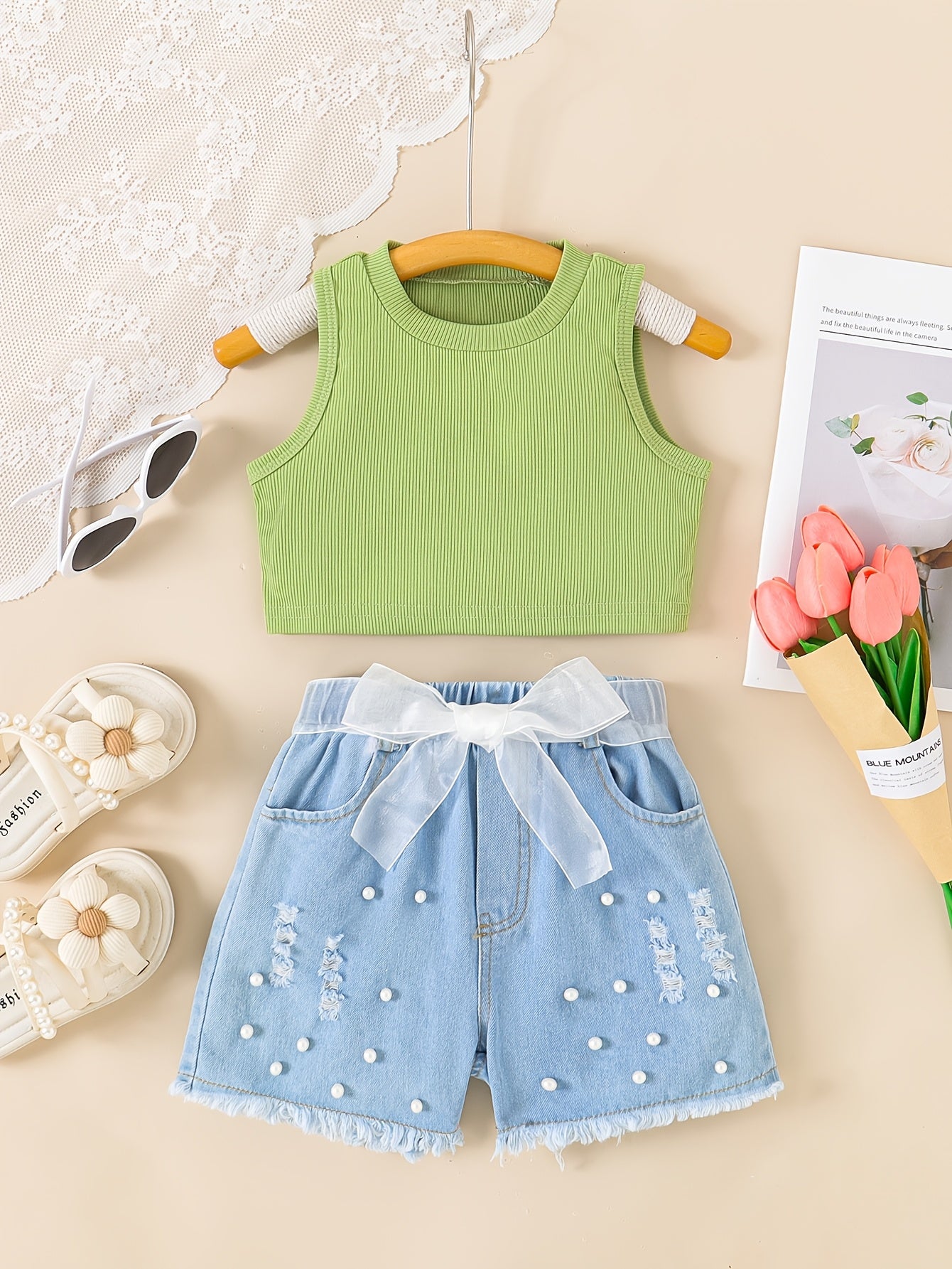 Qizlar uchun tank top va marvarid dizaynli shortlar to'plami, yozgi har kuni kiyish uchun mukammal. Qizlar uchun ajoyib sovg'a g'oyasi.