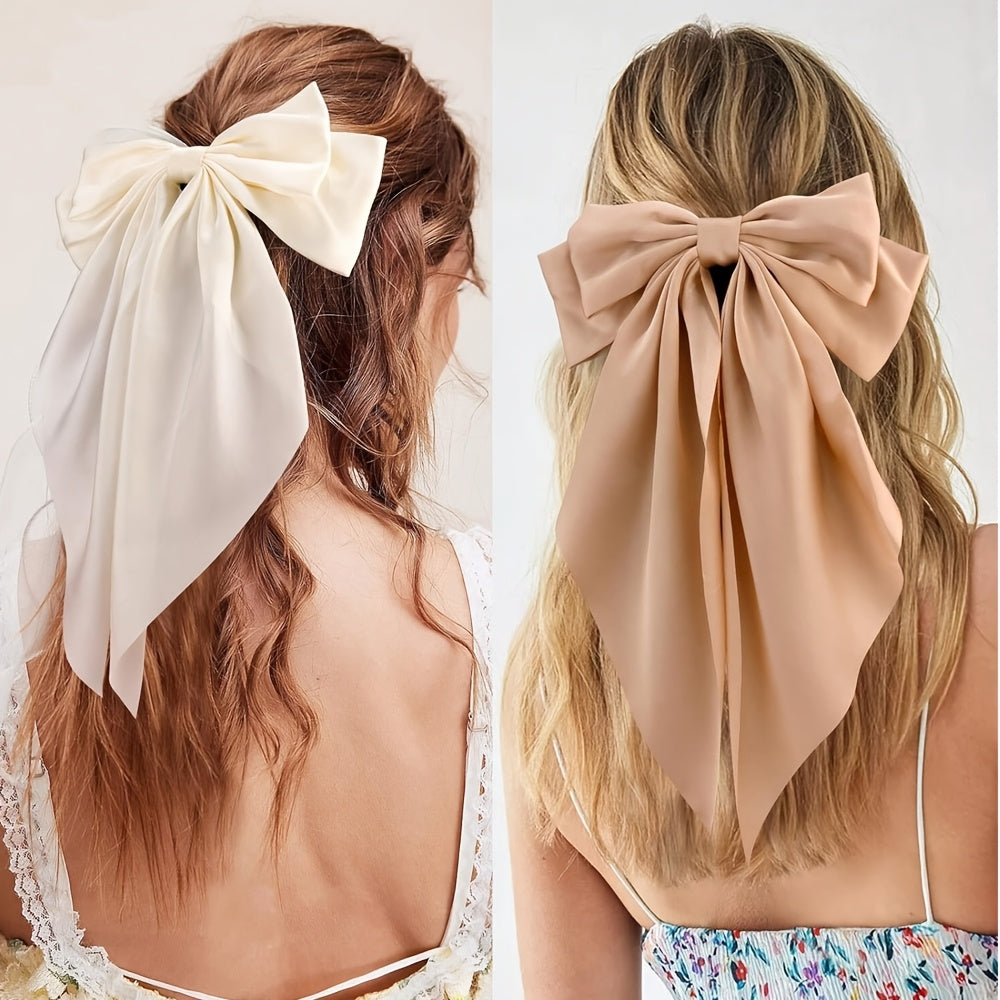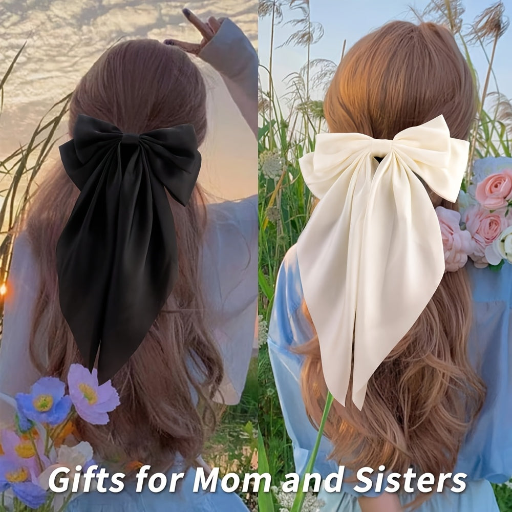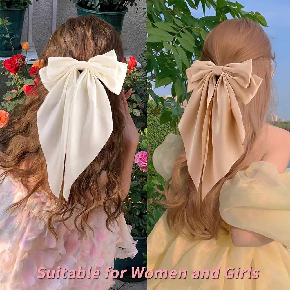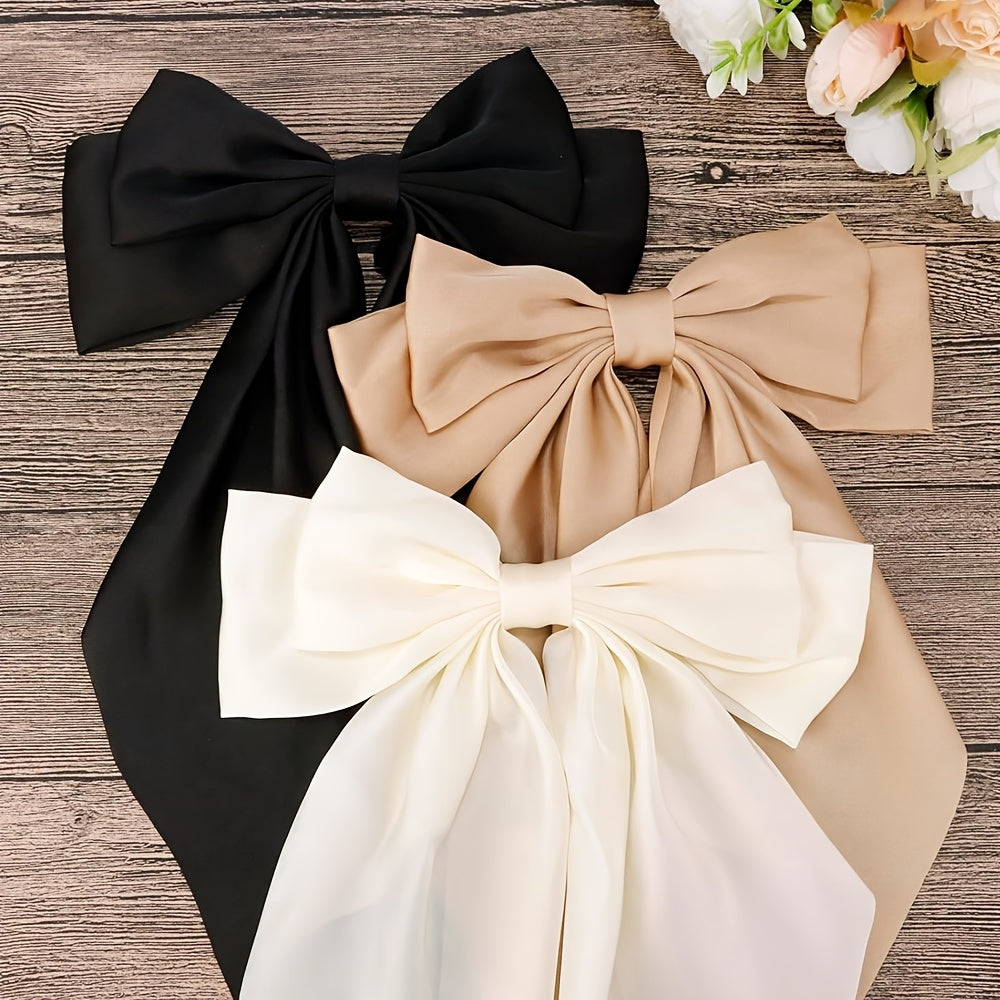 Qizlar uchun satinning soch bantlari 3 ta paket, katta lentali barrettlar, tug'ilgan kunlar uchun