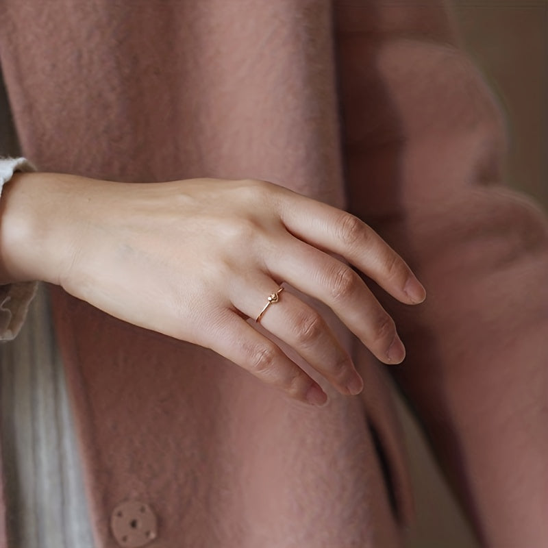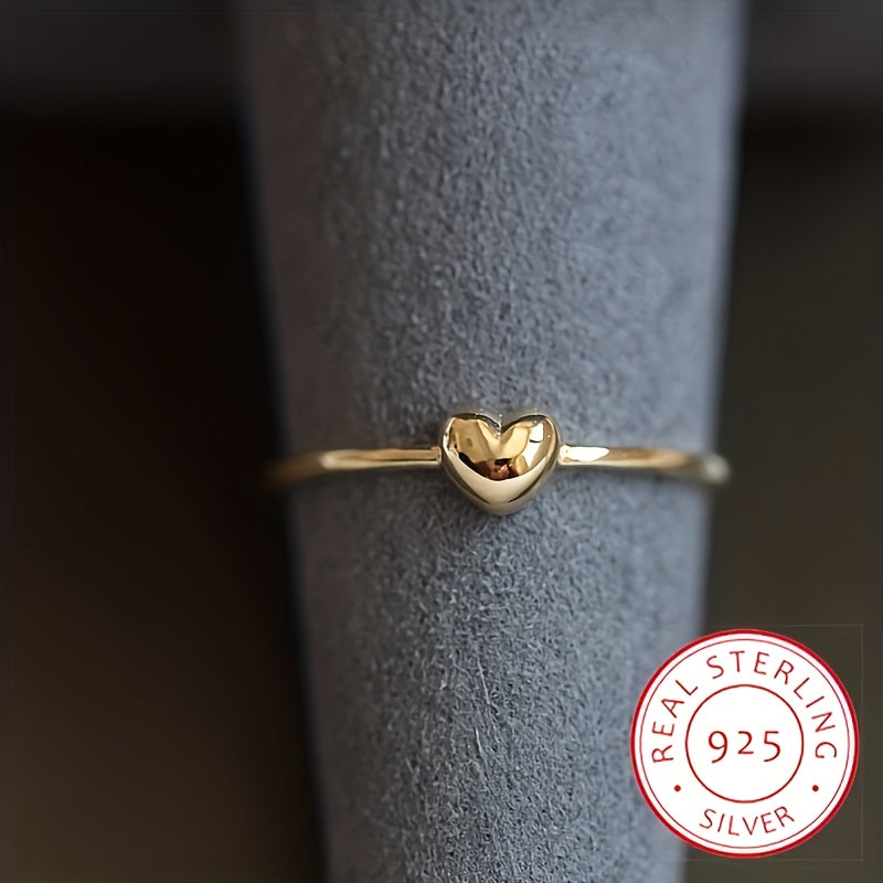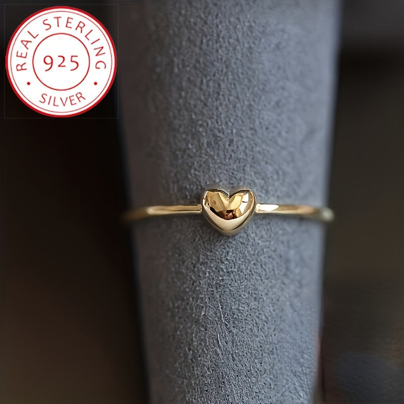 Oltin Rangli Barmoq Halqasi Zargarlik Bezaklari Kundalik Kiymak Uchun - 925 Kumush Mini Sevgi Yurak Nozik Halqa Halqasi Niche Dizayni Bilan