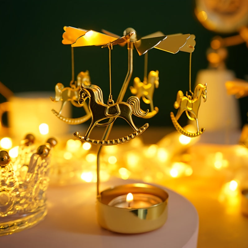 Oltin peri karuseli shamdan ushlagich - aylanadigan, porloq alyuminiy bezak, tug'ilgan kunlar, Halloween, Rojdestvo, Xitoy Yangi yili va Shukrona kuni uchun sovg'a berish uchun ideal.
