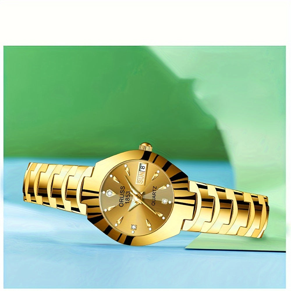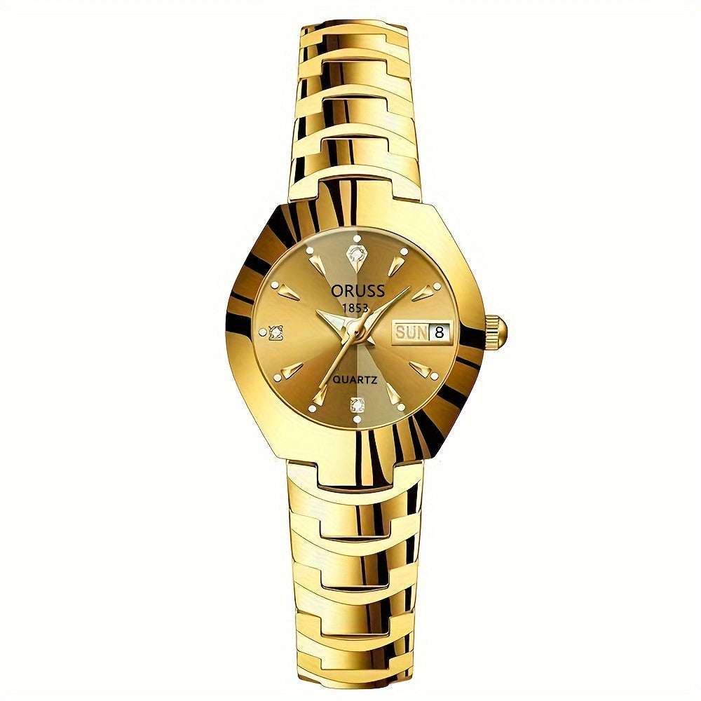 Ayollarlar uchun oltin analog soat, rhinestones va kvarts mexanizmi bilan