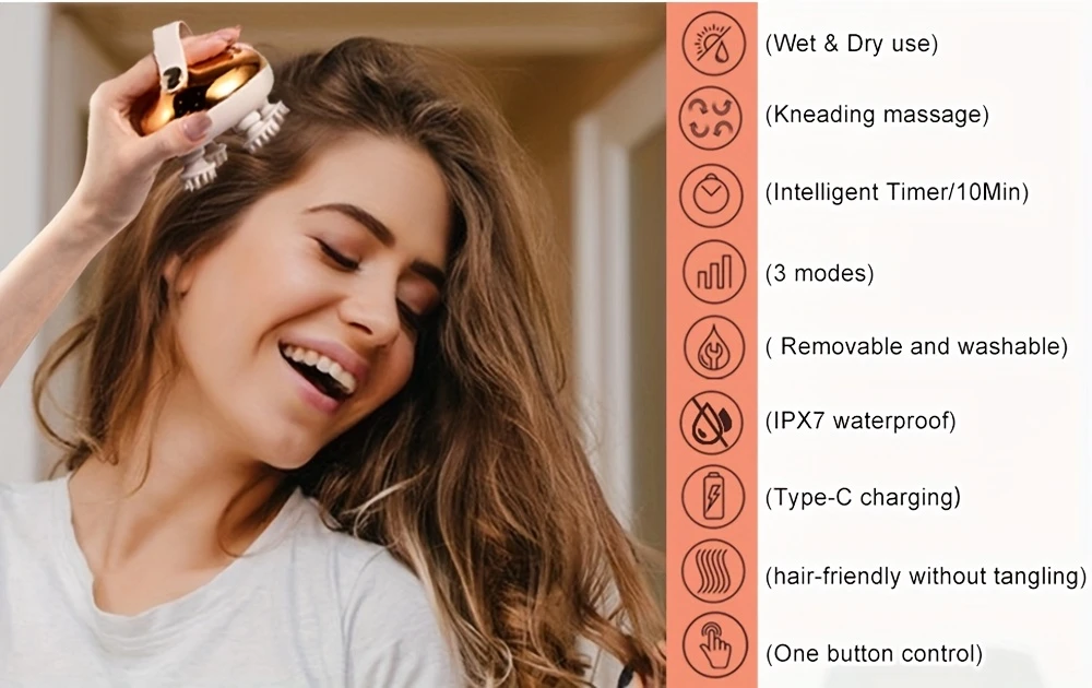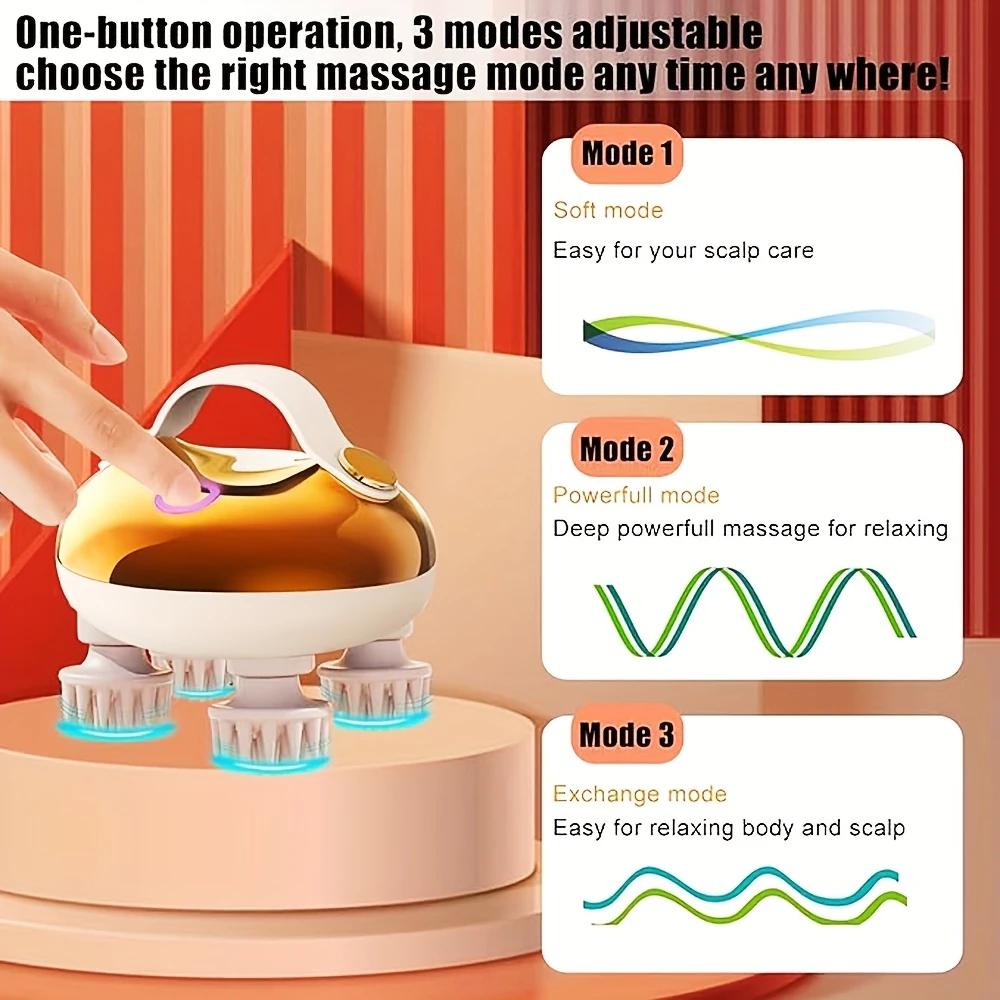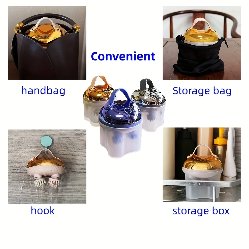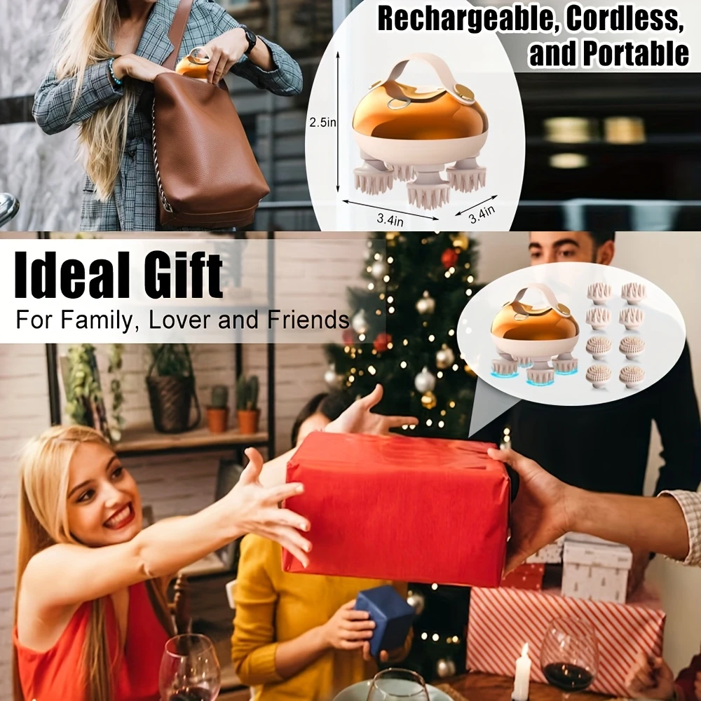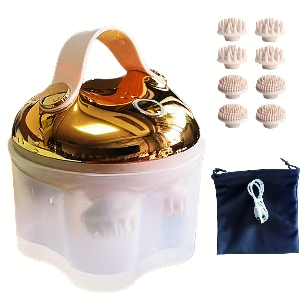 Oltin portativ qayta zaryadlanadigan bosh massajchisi, dam olish, dush massaji va uy hayvonlarini parvarish qilish uchun. Ota-onalar uchun ajoyib sovg'a.