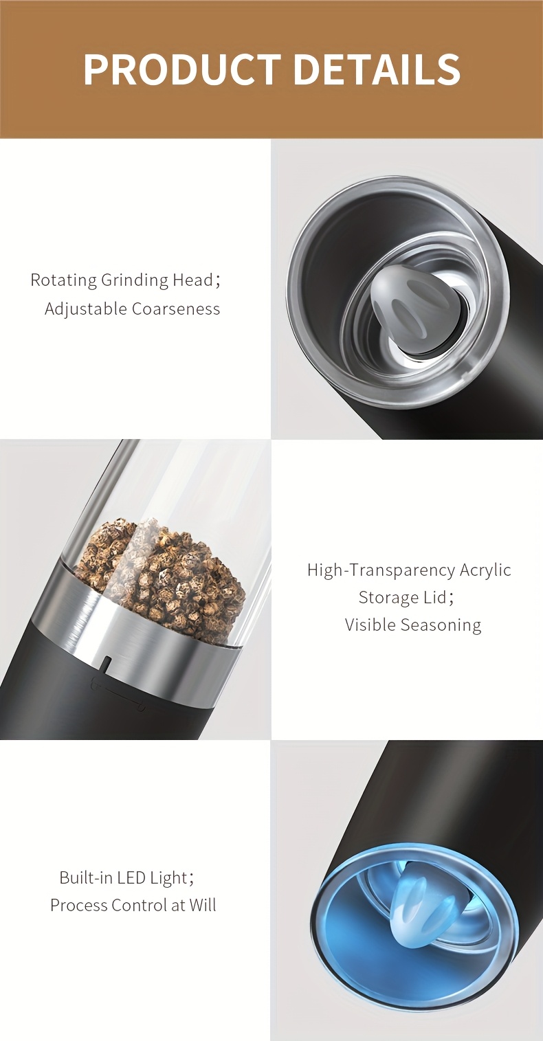 LED chirog'i bilan elektr tuz va murch maydalagich Avtomatik murch maydalagich