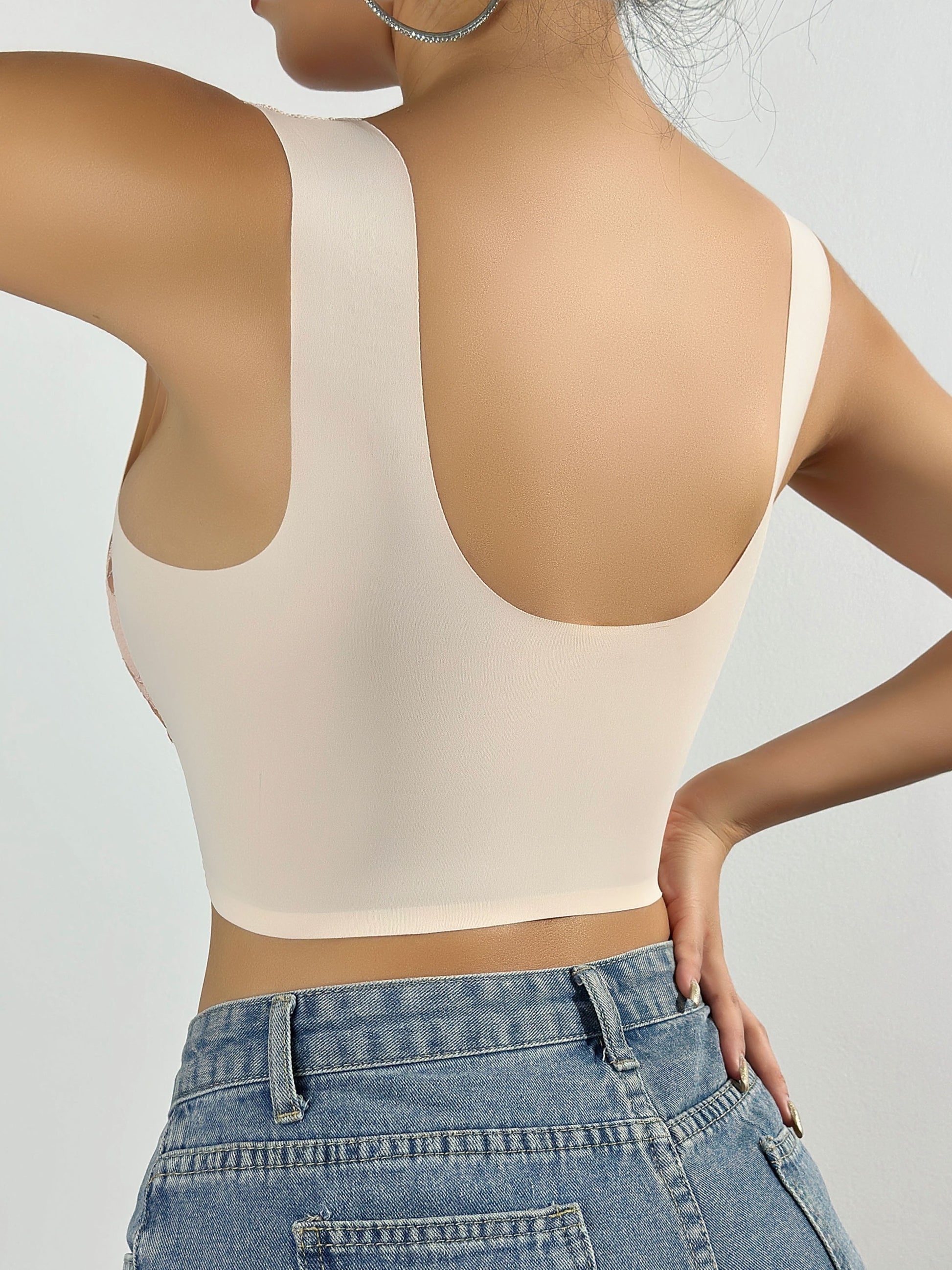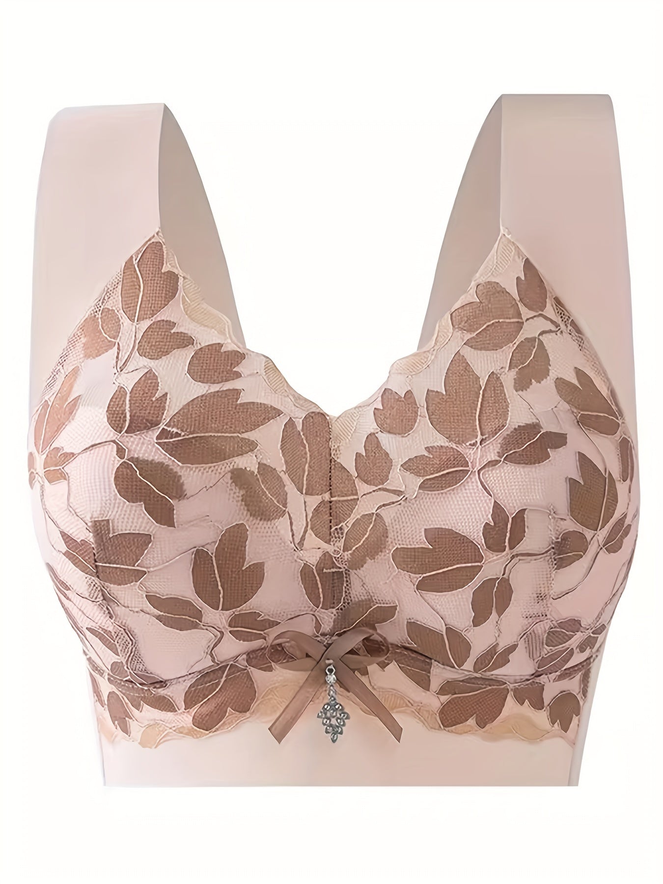 Kulrang simsiz bralet, qora gullar bilan bezatilgan, to'liq qoplov, old tomondan yopish, to'ldirilmagan, nafas oladigan naylon aralashmasi