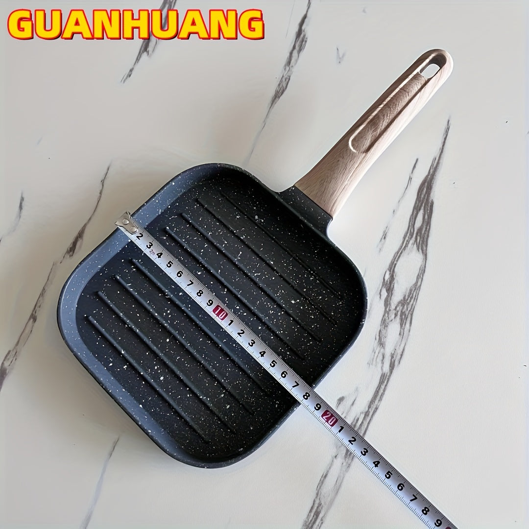 GUANHUANG Qattiqlashmaydigan tuxum va pancake qovurish panosi, yog'och tutqichli, 4-chiqimli pishirgich gaz pechiga va induksiya uchun, tuxum va kolbasa uchun ideal.