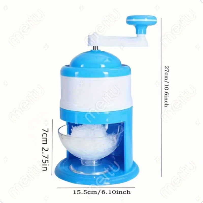 Qo'lda ishlovchi qo'lda ishlovchi muz maydalagich, smoothies va slushies uchun, quvvat talab qilinmaydi. Ko'k va oq dizayn, uy oshxonalari va restoranlar uchun ideal. Mustahkam tutqich dizayni, funksional dekor.