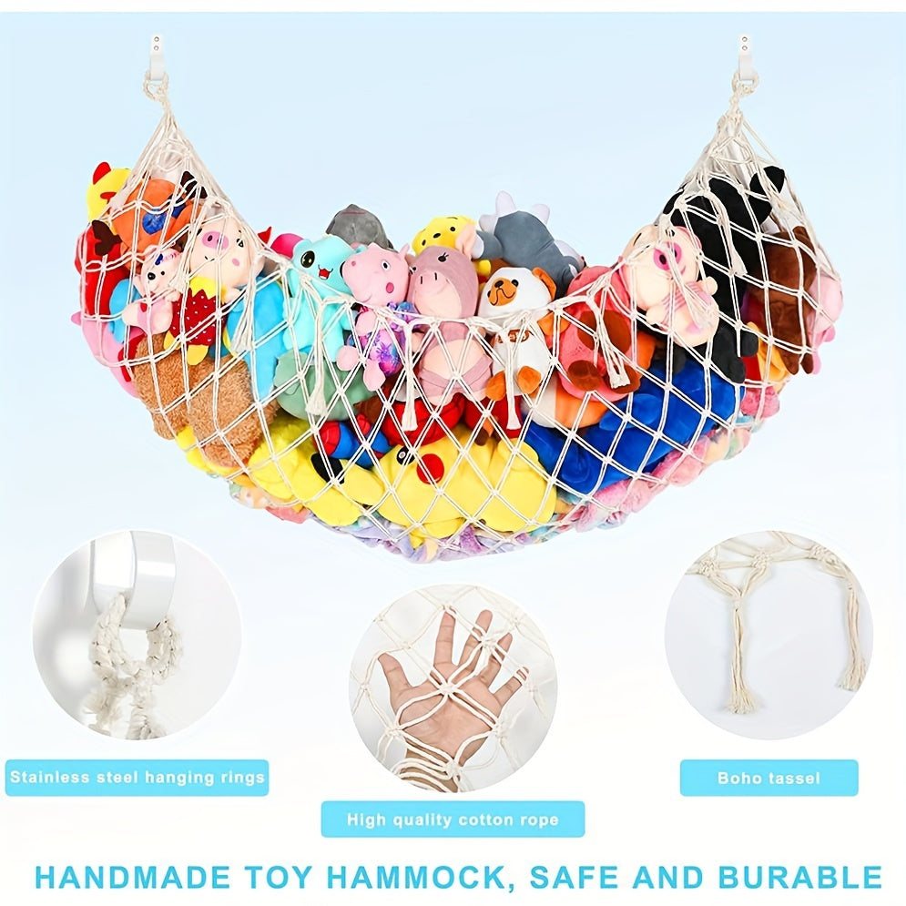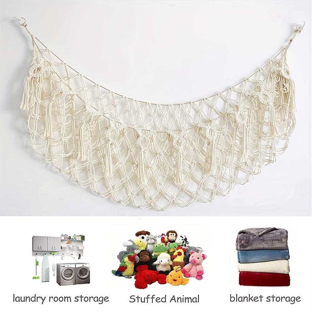 Qo'l bilan tayyorlangan dantel osma saqlash to'ri plush o'yinchoqlar va paxta ipi uchun, burchak saqlash va xona bezatish uchun mukammal.