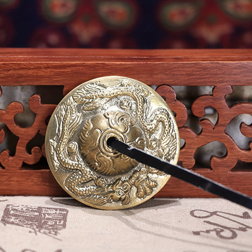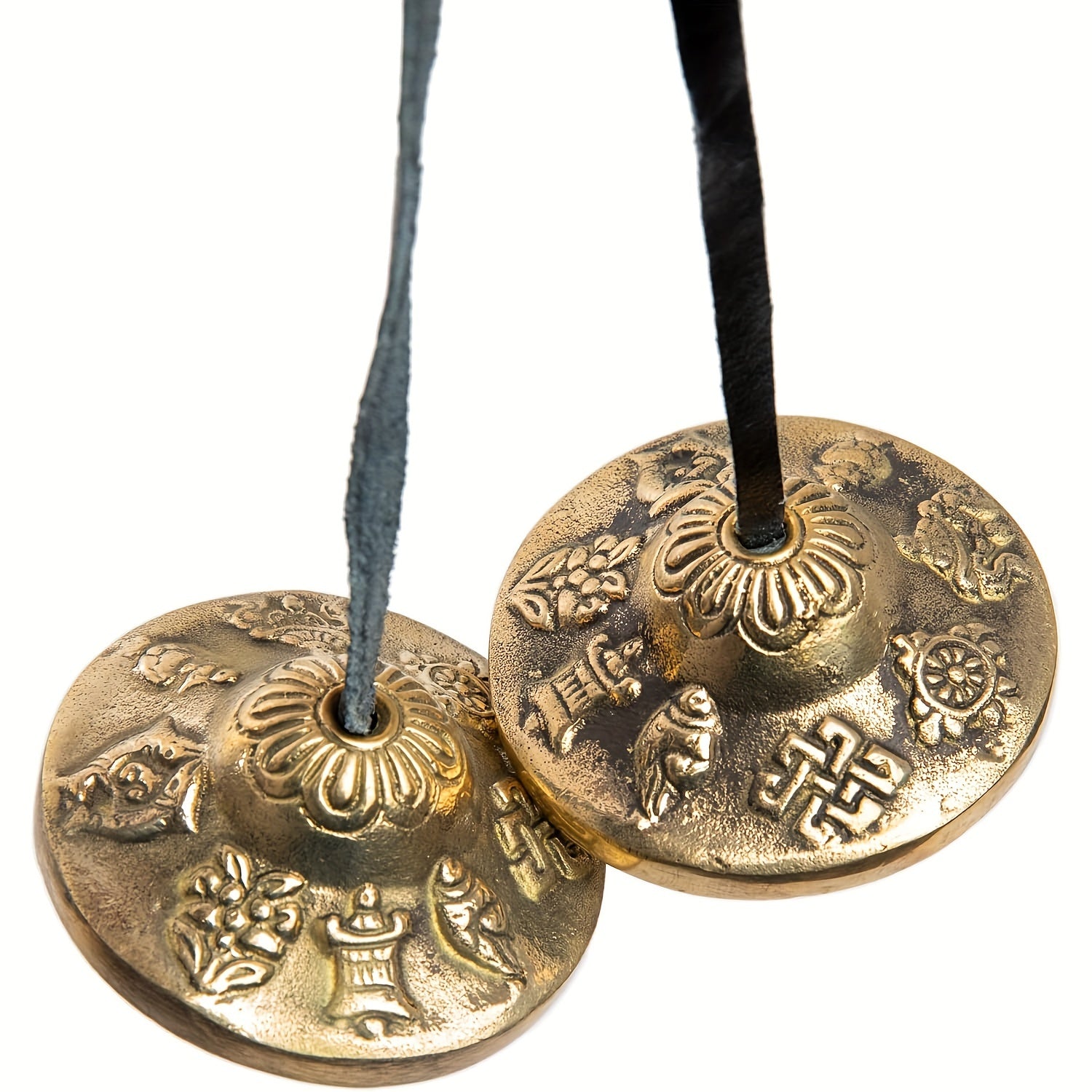 Antik bronza qoplamasi va gullar va spiral naqshlar bilan bezatilgan qo'l mehnati Sinsoledad Tingsha/Simbal qozonlari - meditatsiya va ruhiy sovg'alar uchun mukammal.
