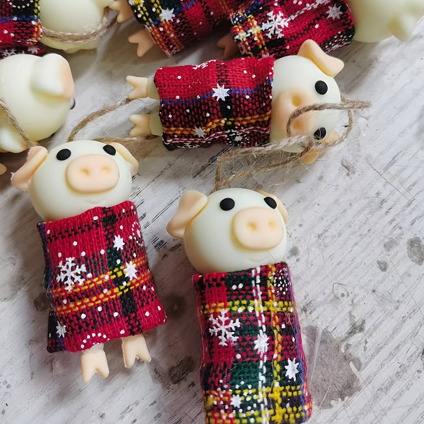 Qo'l bilan tayyorlangan qiziqarli cho'chqa Rojdestvo bezagi - Rang-barang ko'rpa bilan - Daraxt uchun jozibador plastik dekor, mukammal sirli Santa sovg'asi va qiziqarli partiya aksessuar, uy uchun noyob Rojdestvo dekor.