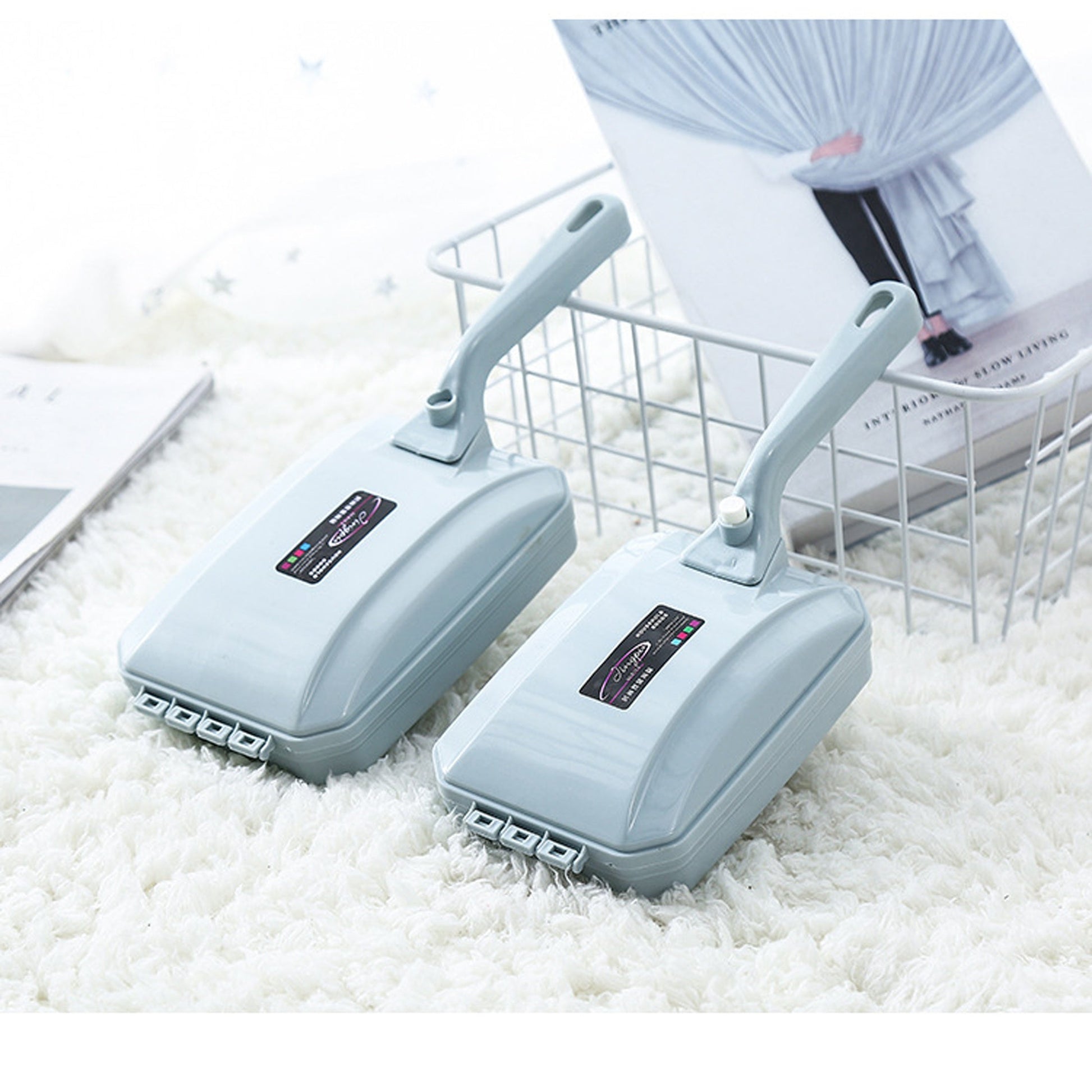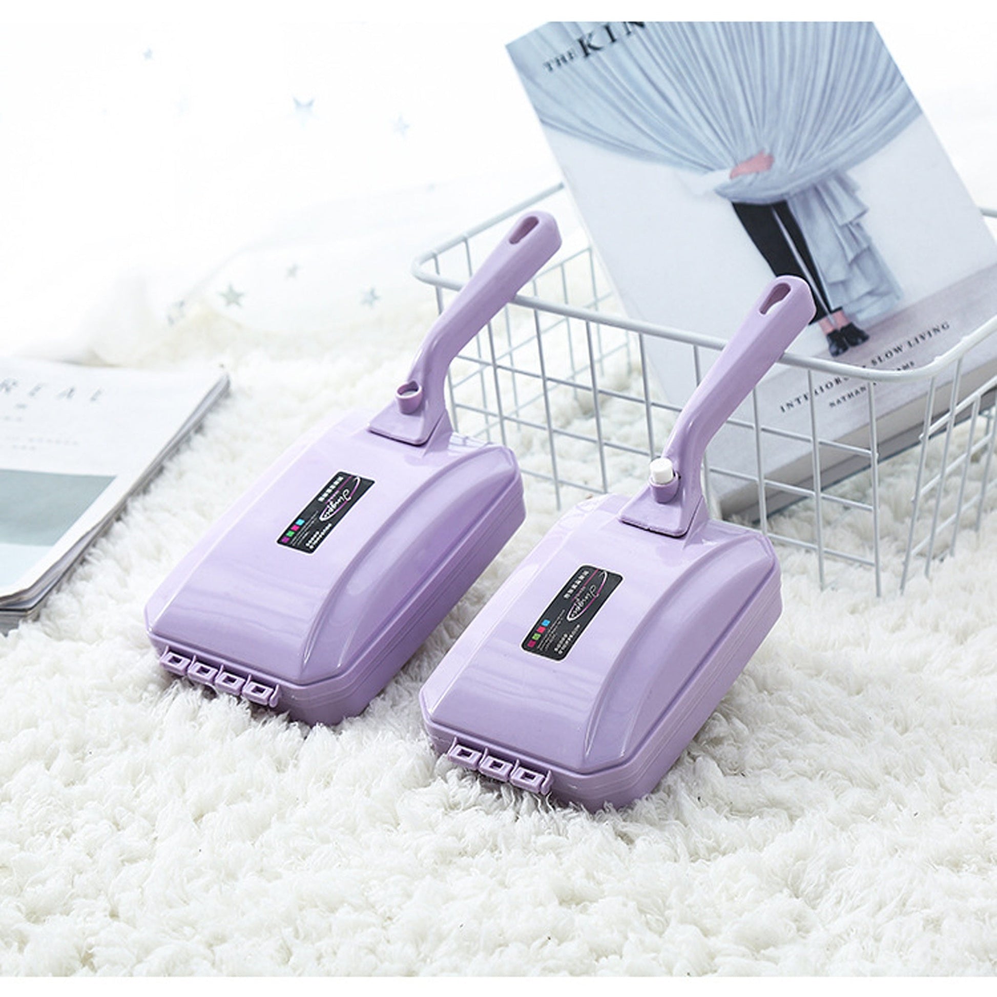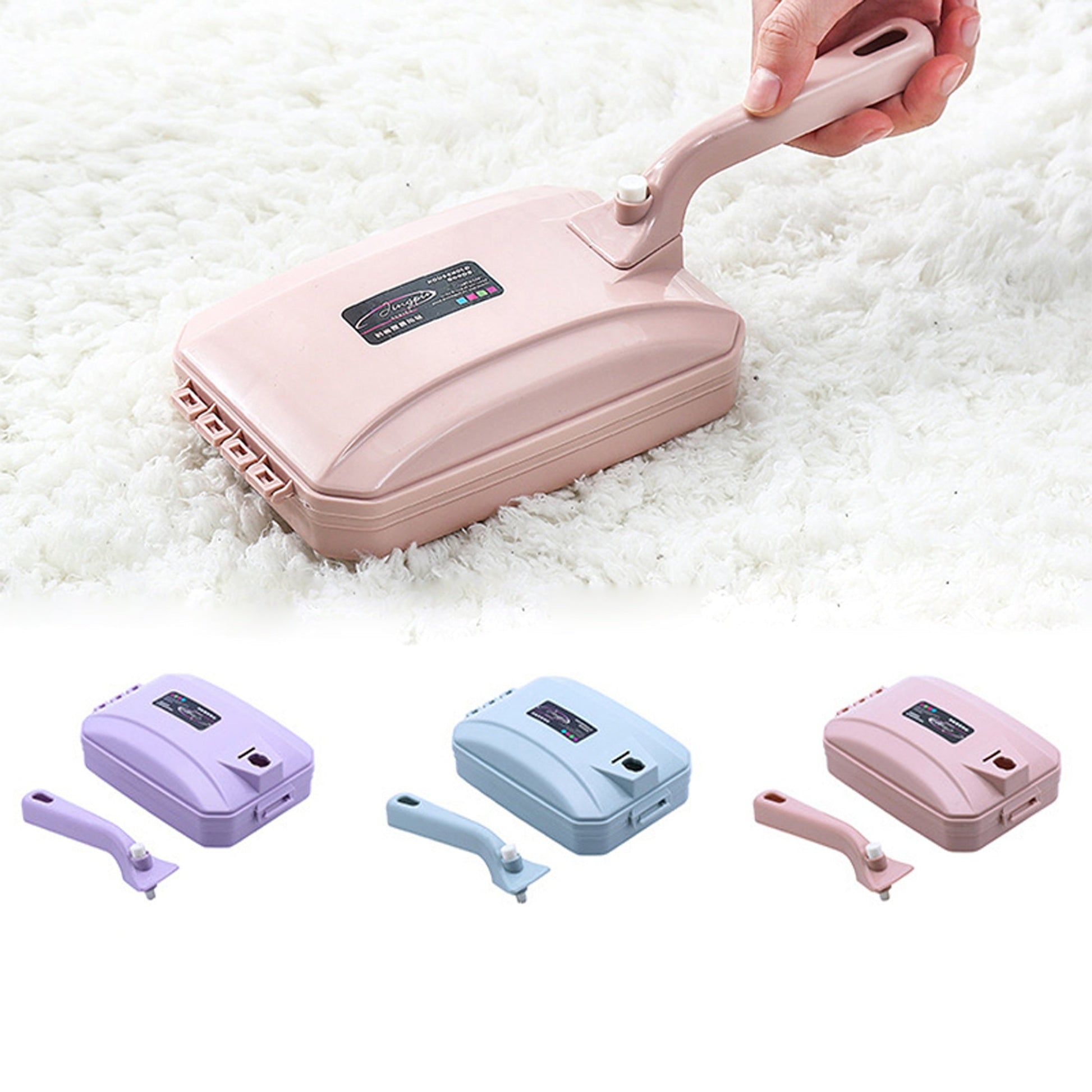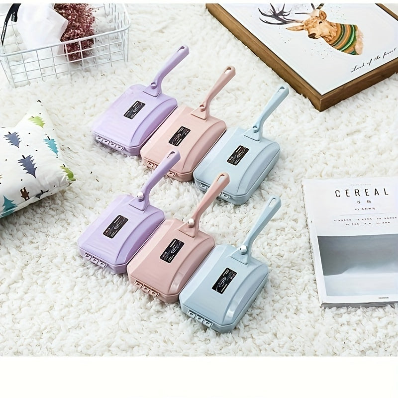 Plastik tutqichli qo'l bilan ishlatiladigan chang olib tashlash cho'tkasi - yashash xonasi, yotoqxona, kiyimlar va gilamlar uchun to'kintilar va uy hayvonlari sochlarini tozalash uchun mukammal. Qo'lda ishlash, batareyalar kerak emas. Tasodifiy rang.