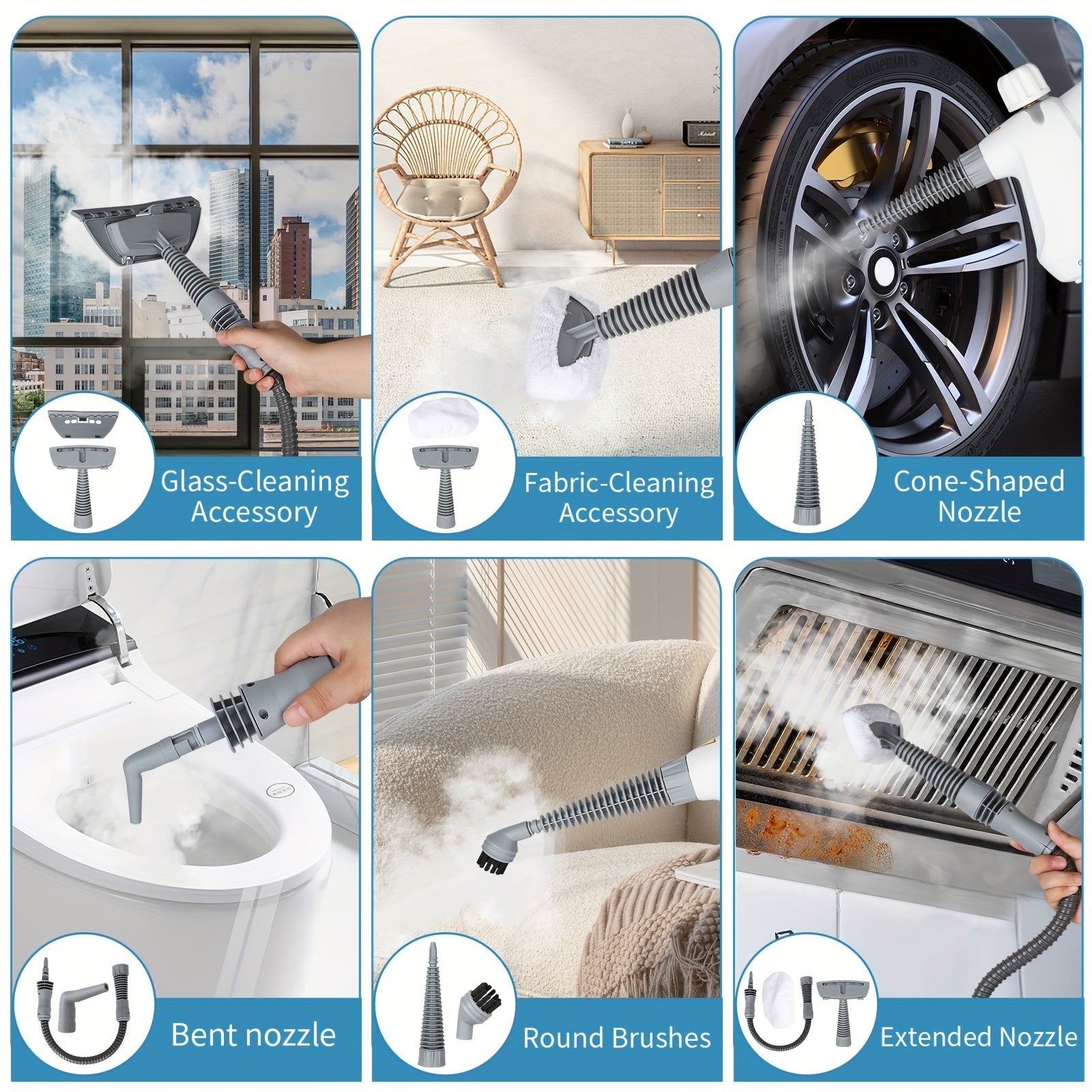 Uyda ko'p yuzalarni tozalash uchun qo'lga olinadigan bug' tozalagich, jumladan, pol, mebel, fugalar va avtomobillar.