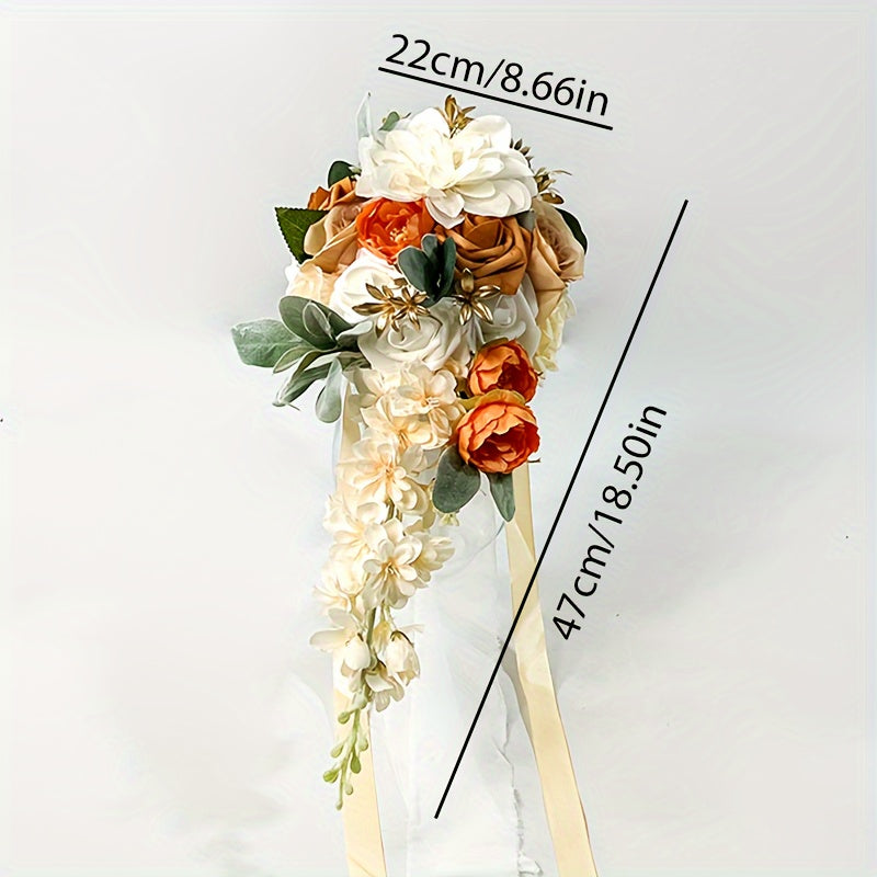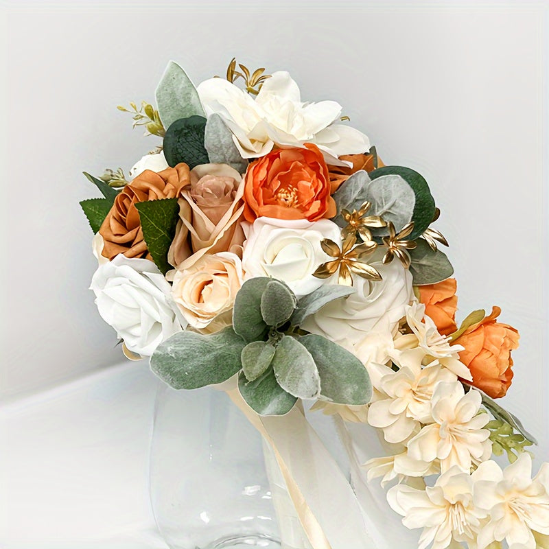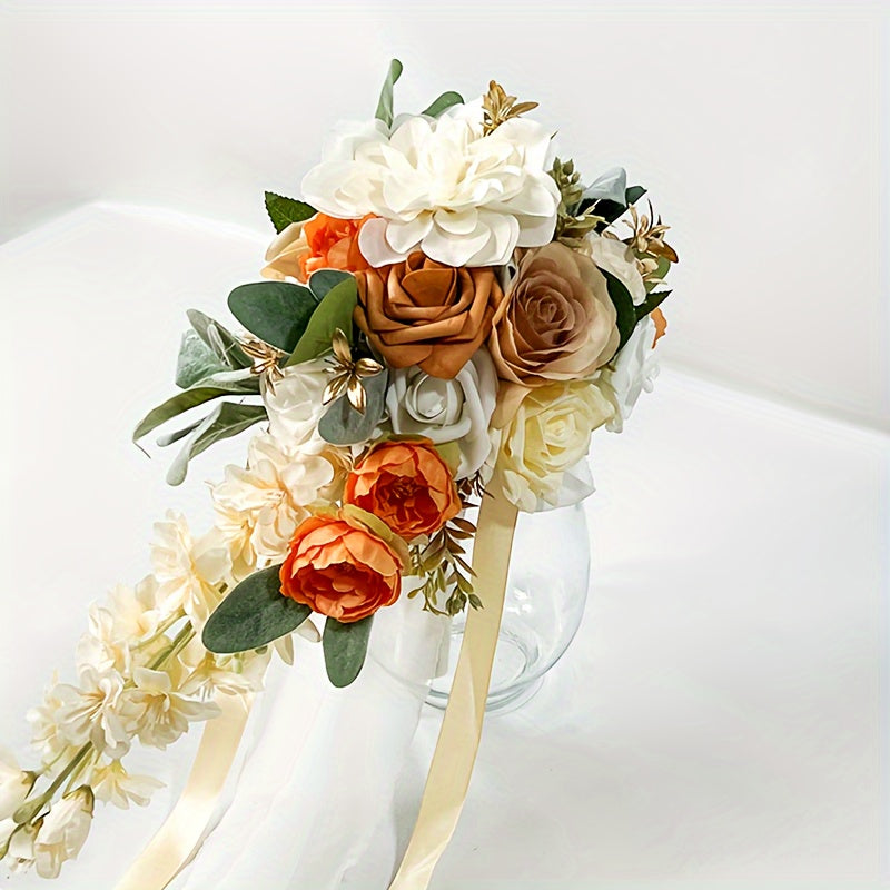 Sun'iy gul to'y uchun buket, ip bilan bezatilgan va vintage lent bilan ta'minlangan