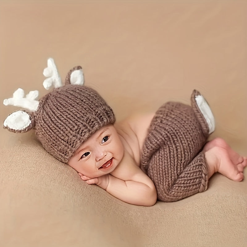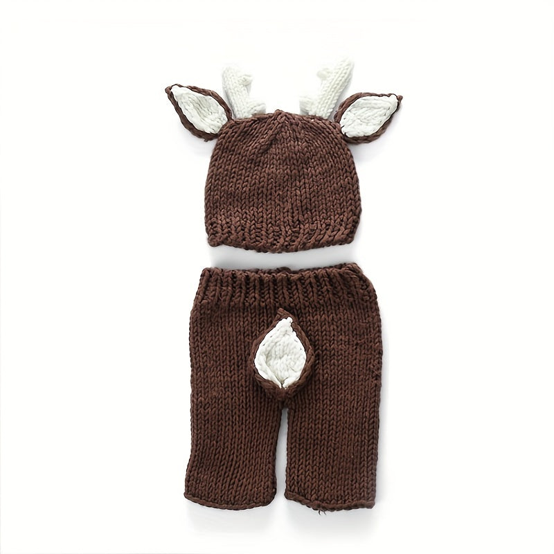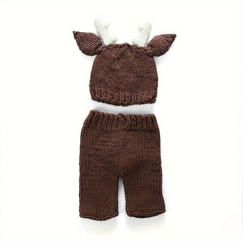 Qo'l bilan tayyorlangan Rojdestvo kiyik, qahva rangidagi ikki qismli to'plam, bolalar uchun velur to'qilgan fotosurat aksessuarlari