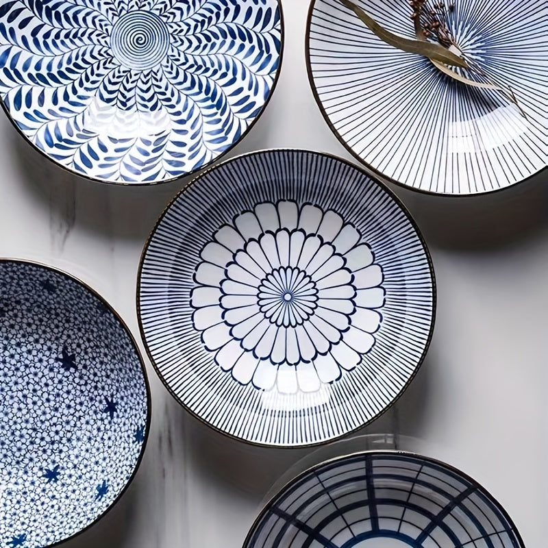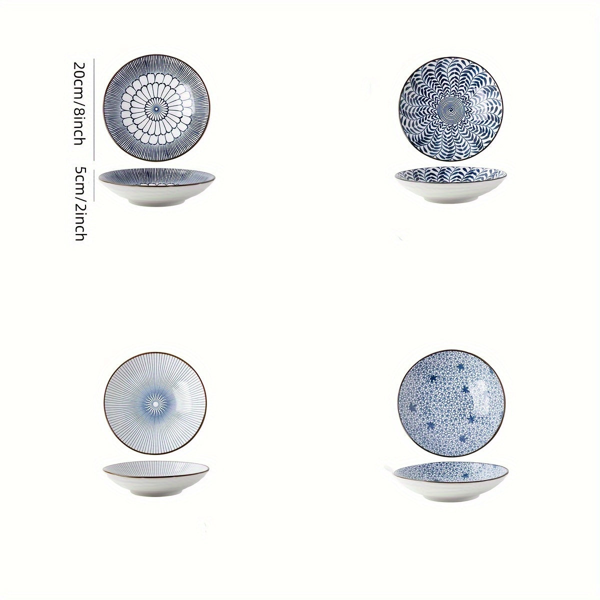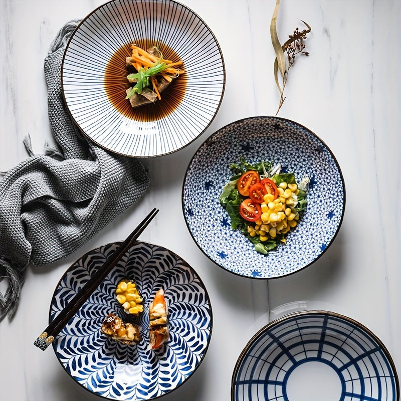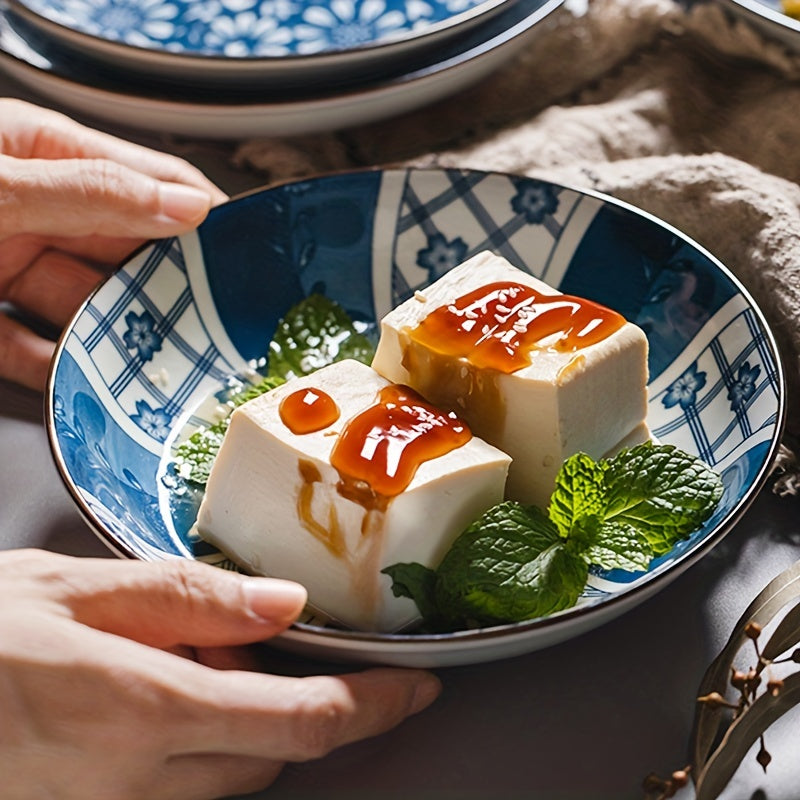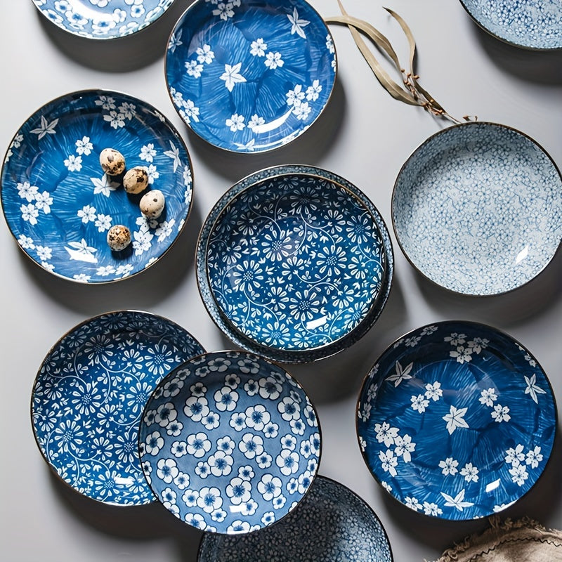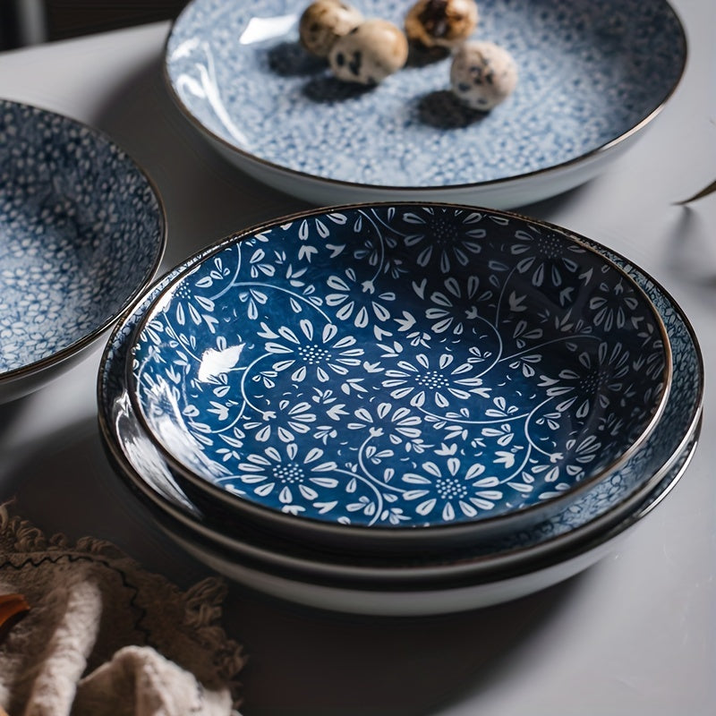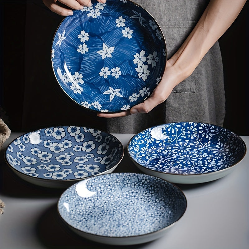 Keramika kechki taomlar uchun to'plam, ko'k va oq gul naqshli, 20.32 sm, salat, makaron va apetit uchun