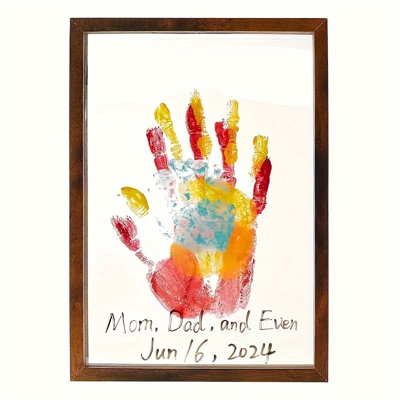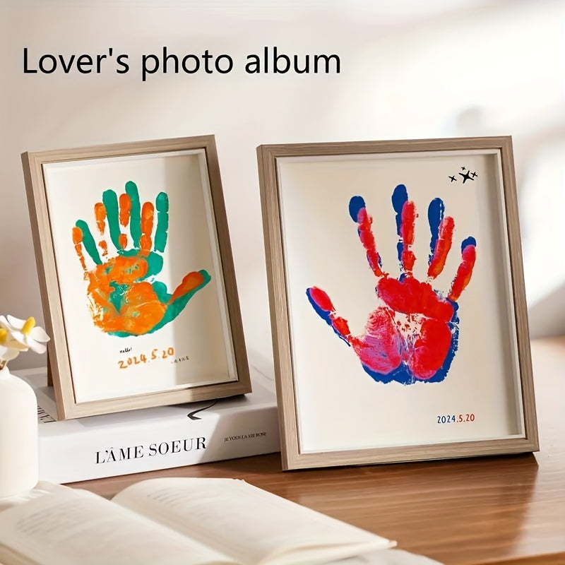 Juftliklar uchun qo'l izlari xotira ramkasi to'plami - Ushbu DIY to'plami bilan o'z rangli palma izingizni xotira san'ati sifatida yarating. Yil dönümleri yoki Sevishganlar kuni sovg'asi uchun mukammal, bu yog'och ramka bitta rasmni ushlab turadi.