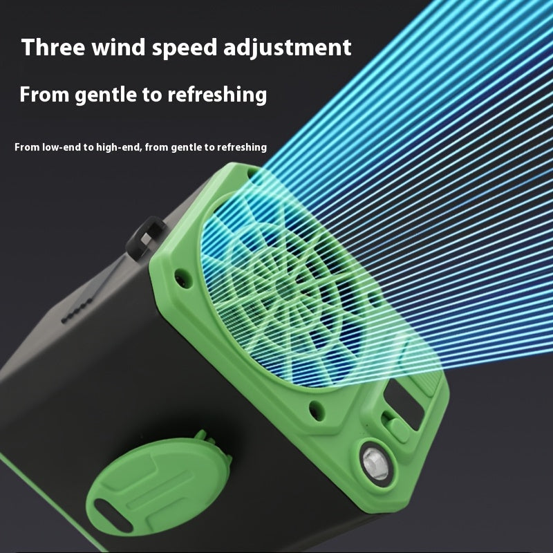 LED chiroq, quvvat banki va 3 tezlikli portativ shamol bilan qo'lsiz qayta zaryadlanadigan bel soati. Kamping, yurish va favqulodda vaziyatlar kabi tashqi faoliyatlar uchun ideal. Clip-on dizayni bilan