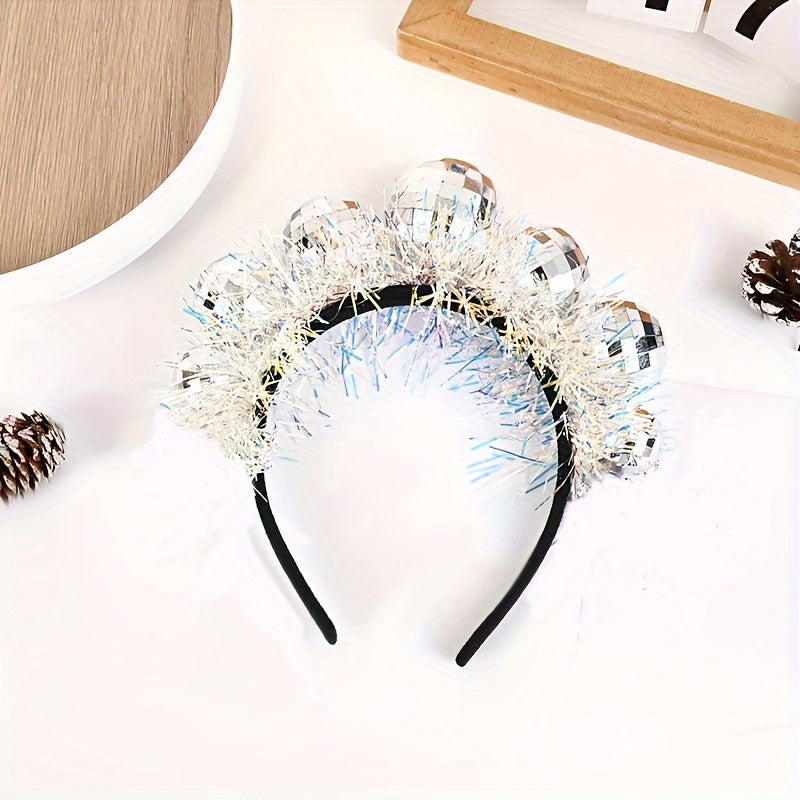Rojdestvo bayrami bosh kiyimi Disko to‘pli yalt-yultli halqalar bilan ijodiy bayramona ko‘rinish uchun