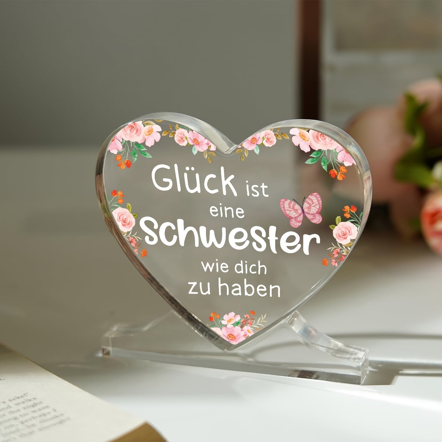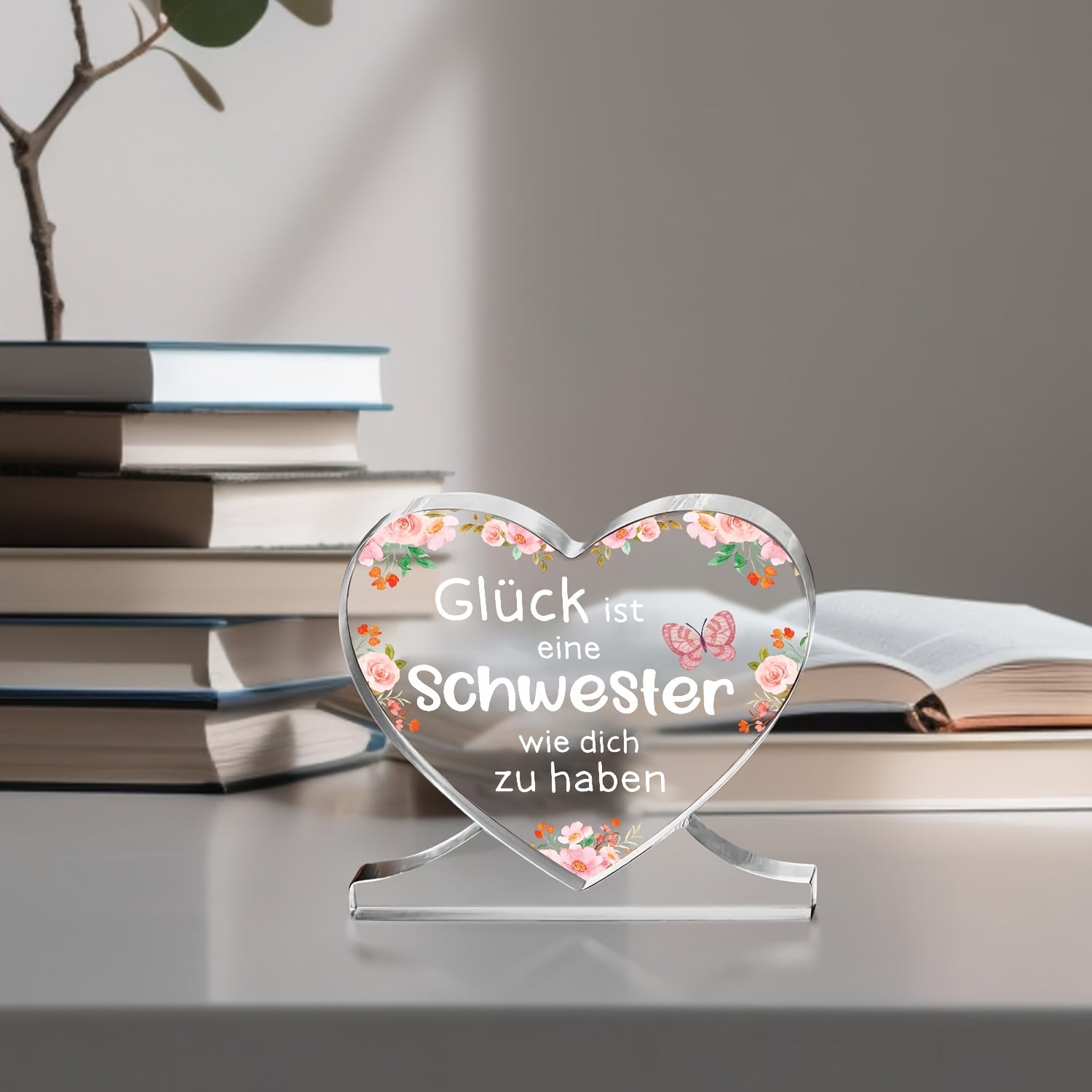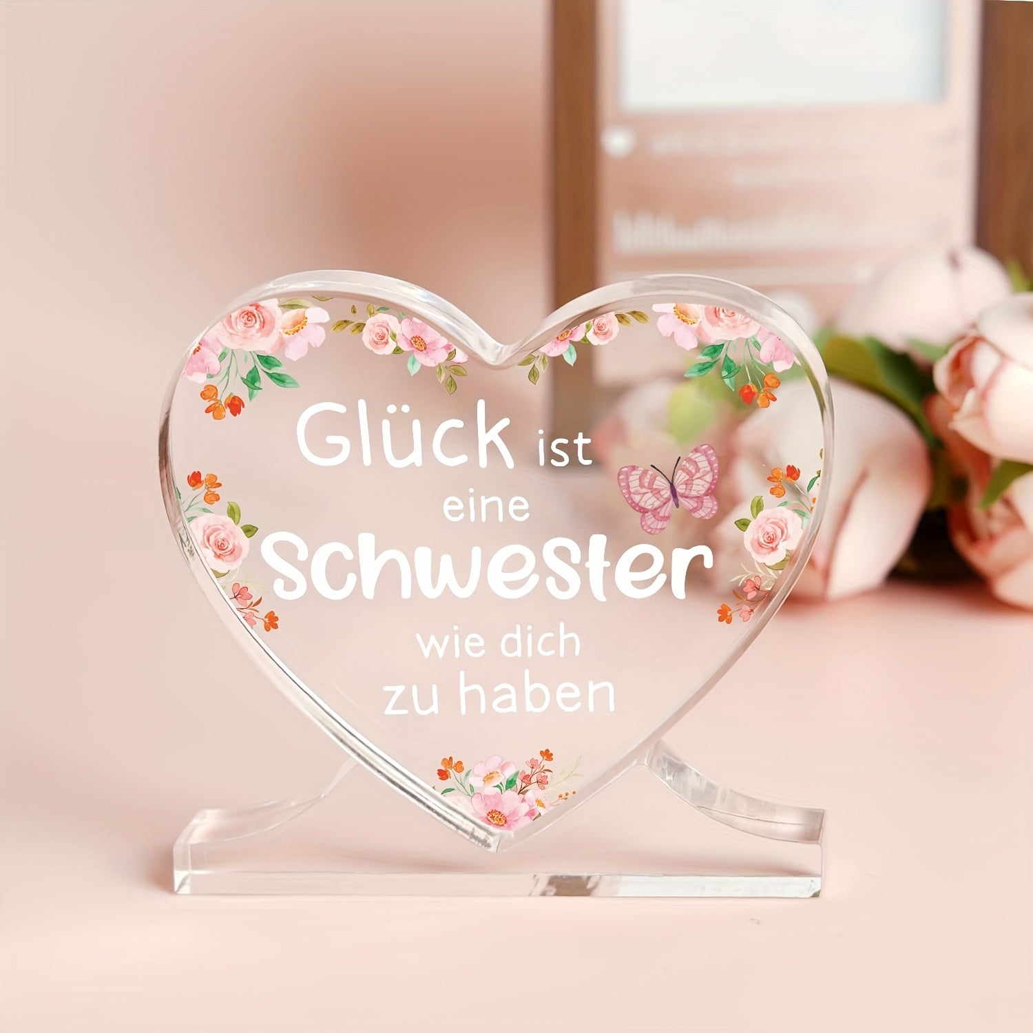 Yurak shaklidagi akril plakat bezak, opa uchun shaxsiylashtirilgan nemis sovg'asi, ofis yoki yotoqxona uchun mos, Shukronalik, Rojdestvo yoki tug'ilgan kun uchun ideal.