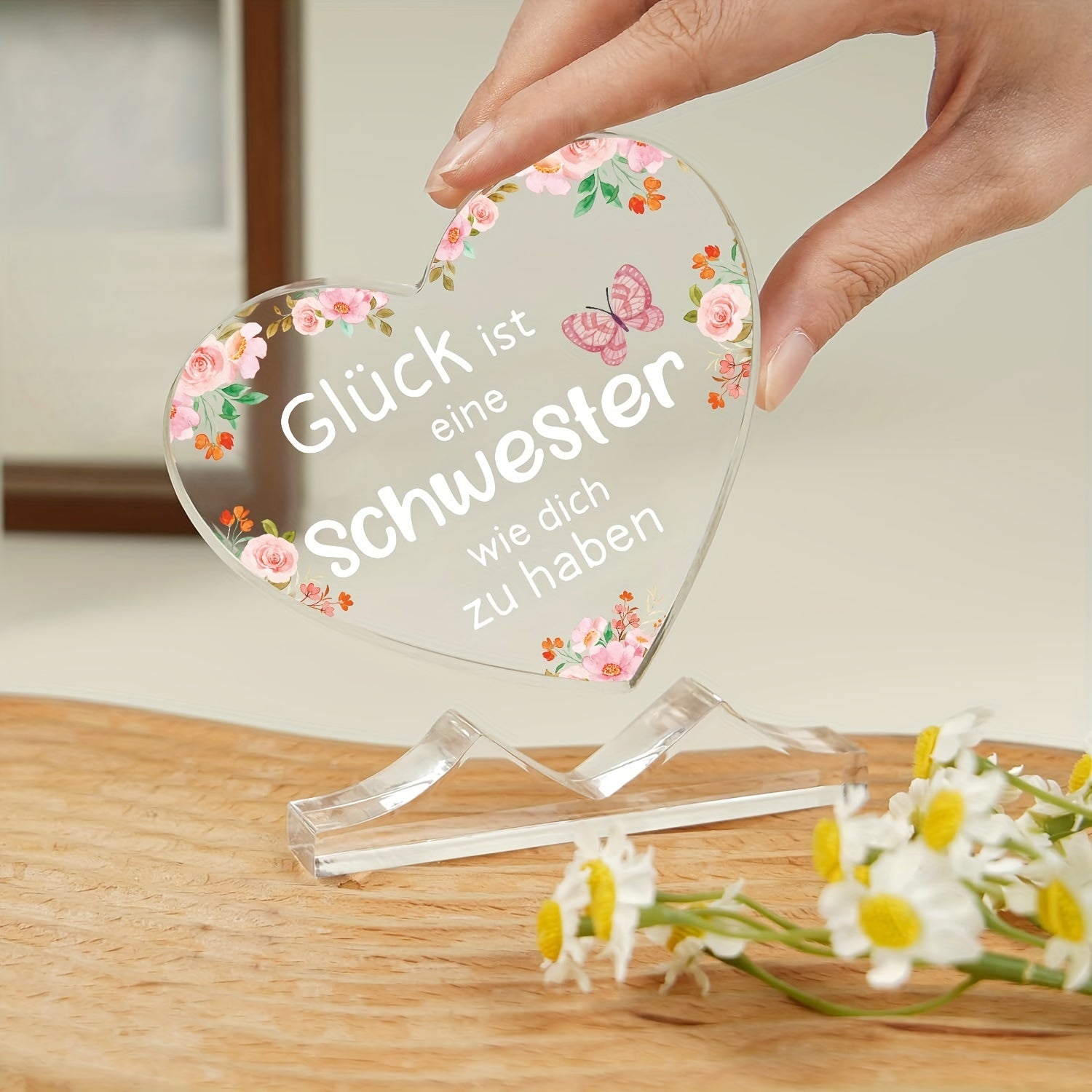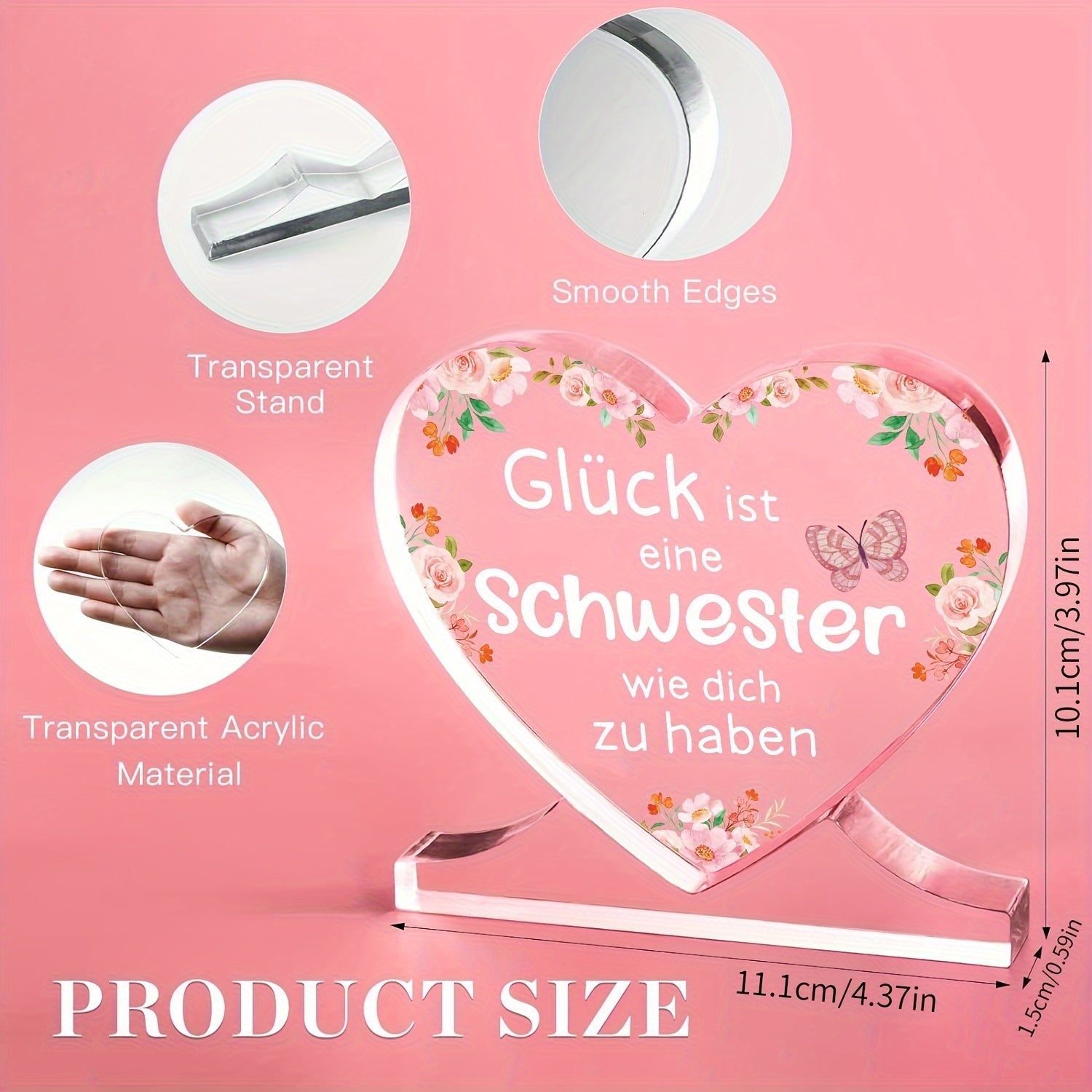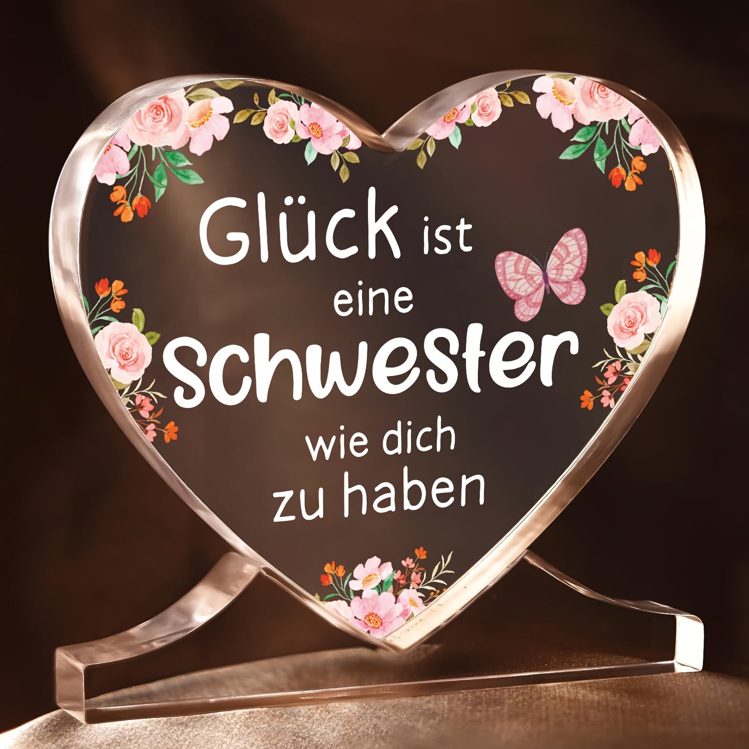 Yurak shaklidagi akril plakat bezak, opa uchun shaxsiylashtirilgan nemis sovg'asi, ofis yoki yotoqxona uchun mos, Shukronalik, Rojdestvo yoki tug'ilgan kun uchun ideal.
