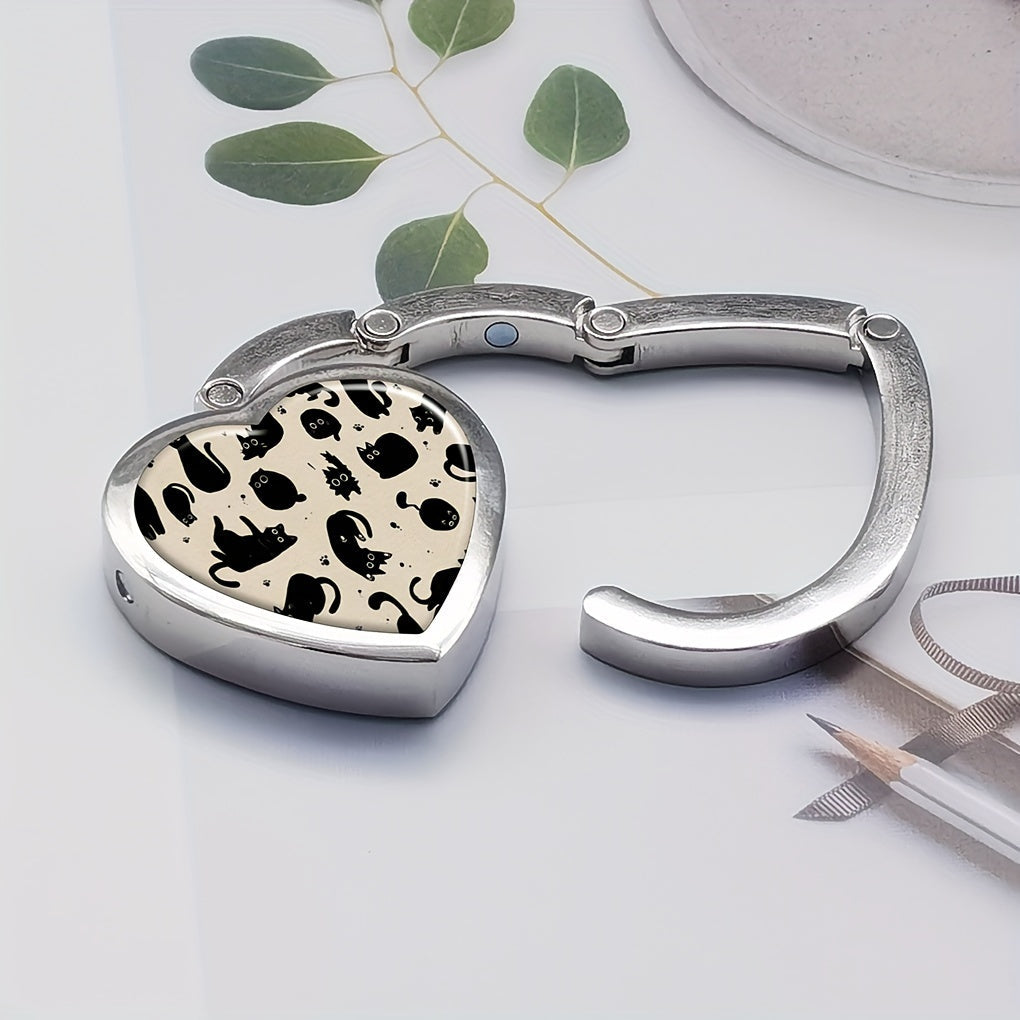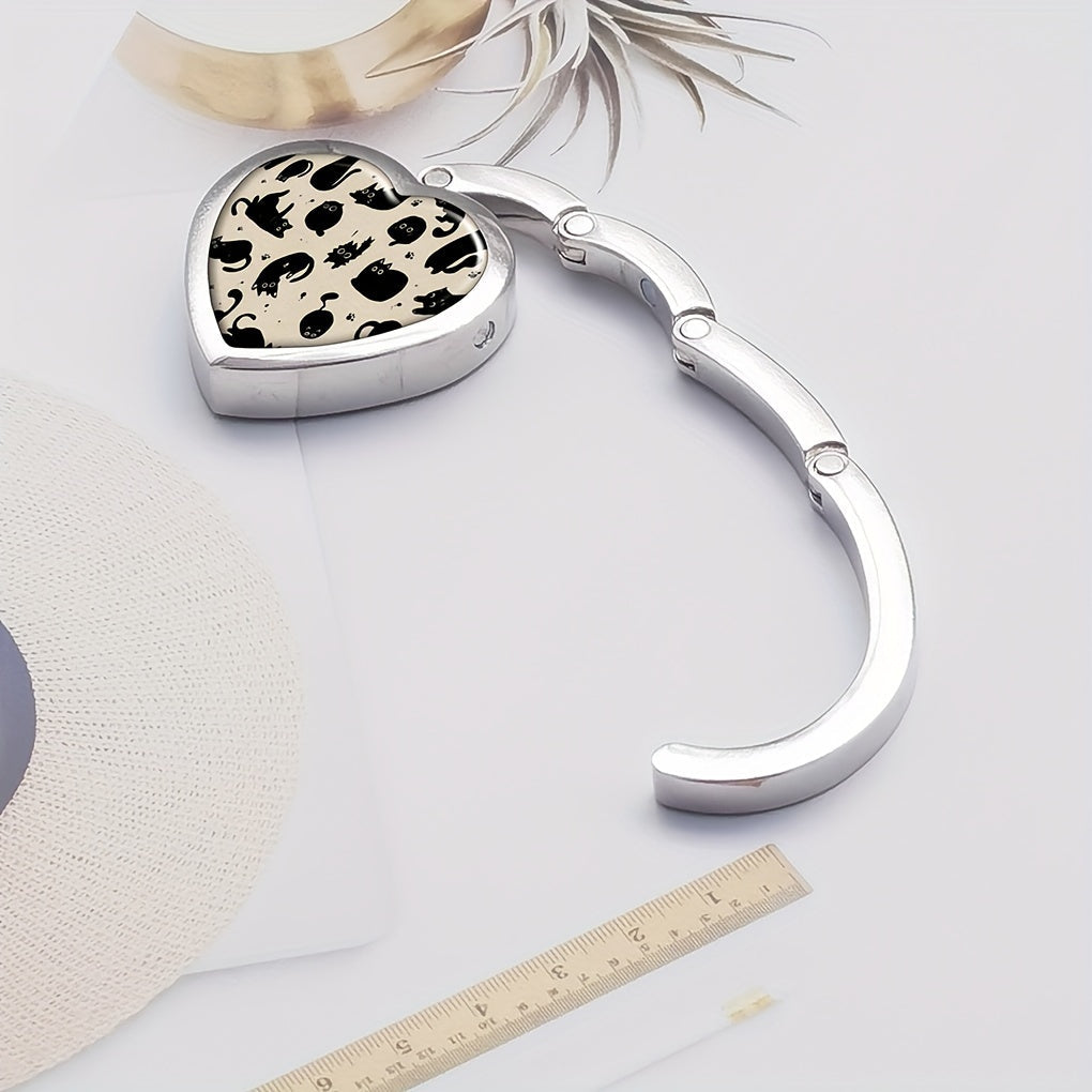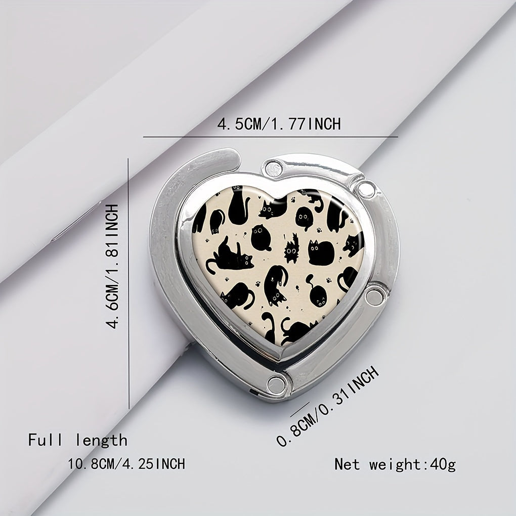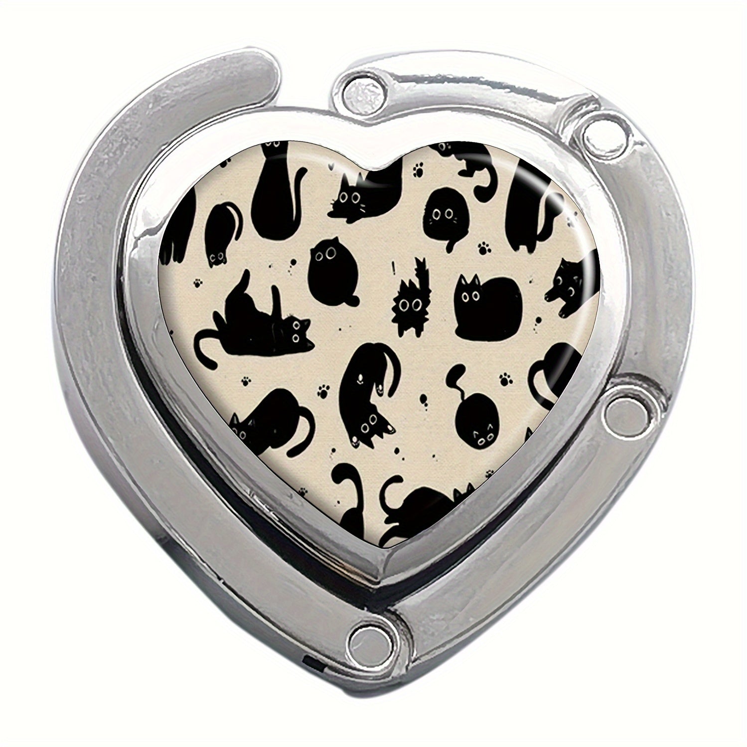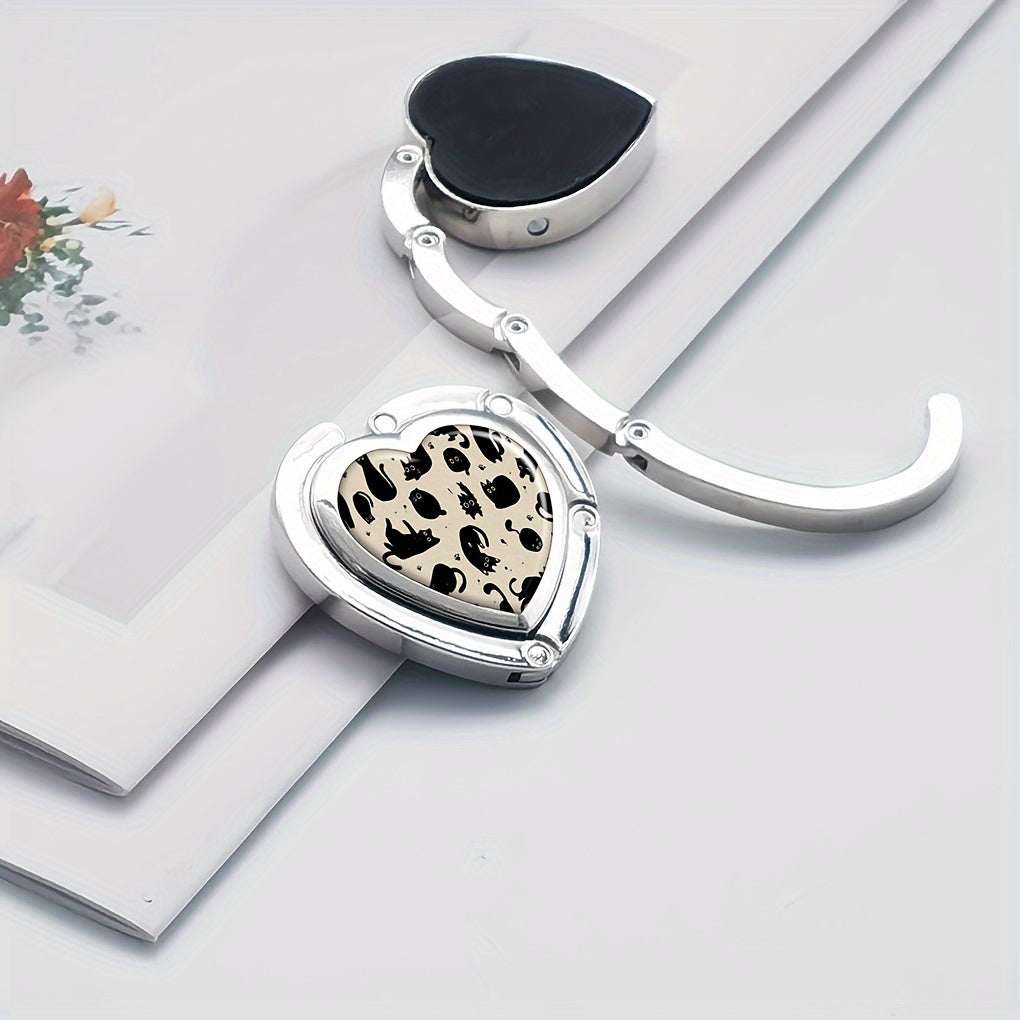 Yurak shaklidagi bukiladigan sumka osgichi - Zink qotishmasidan tayyorlangan, zamonaviy vintage uslubida, sumkalar va kalitlar uchun stol usti osgich, sevimli mushuk dizayni bilan.