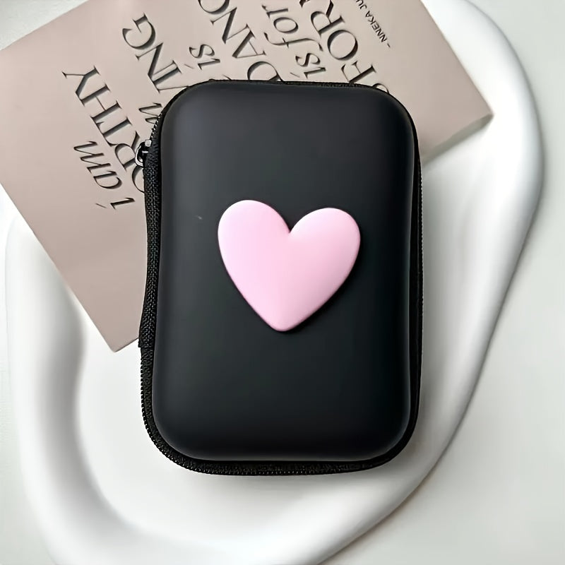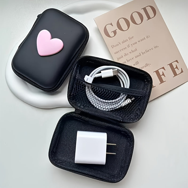 Quloqchinlar, ma'lumot kabeli va zaryadlovchi uchun yurak shaklidagi saqlash sumkasi, tushishdan himoyalovchi zip.