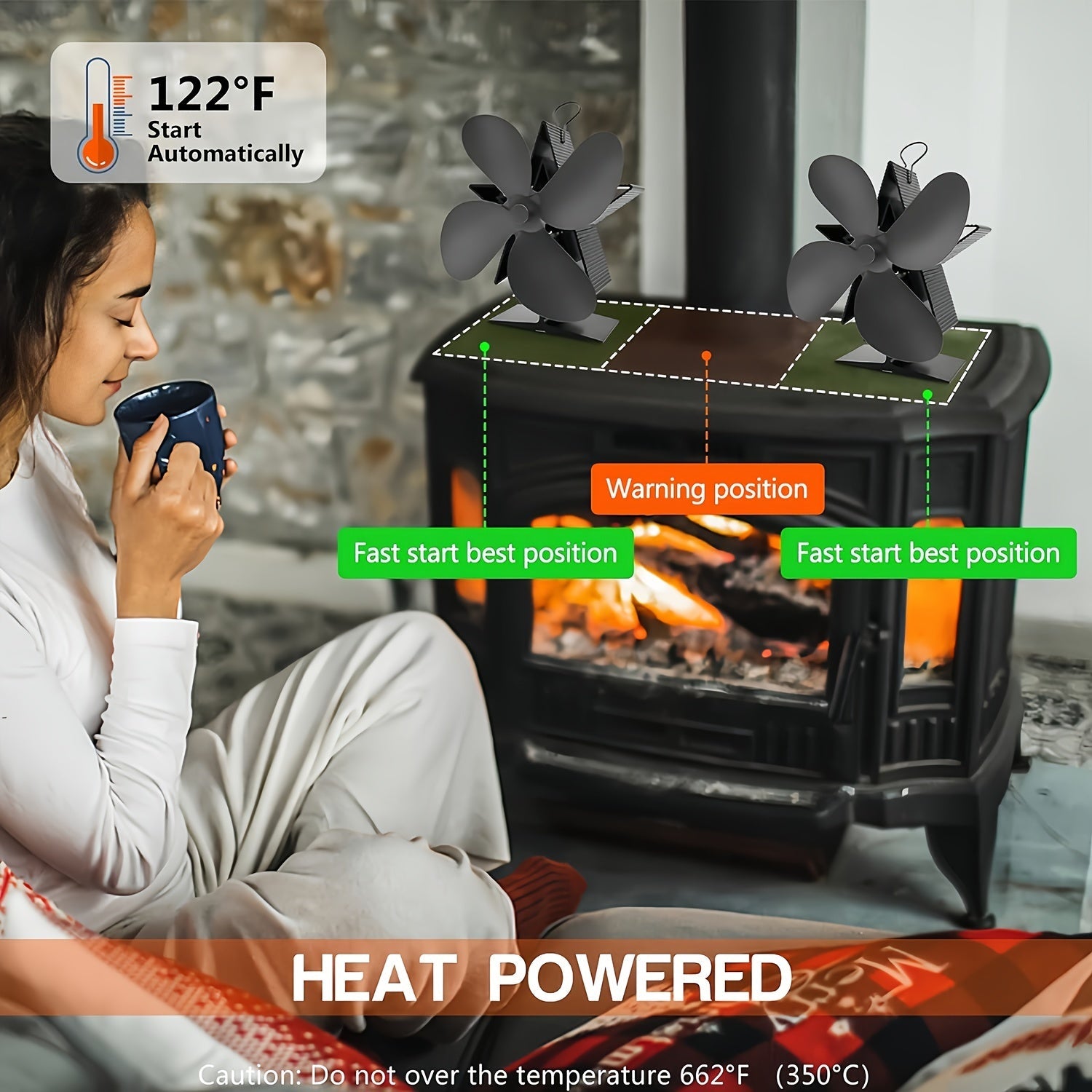 Issiqlik bilan ishlaydigan pechka ventilyatori, 4 pichoqli portativ chiqindi ventilyatori, uy qulayligini oshiradi, energiya tejashga yordam beradi va pechka ifloslanishini kamaytiradi. Siqilgan, jim va foydalanuvchi uchun qulay uy jihozi.