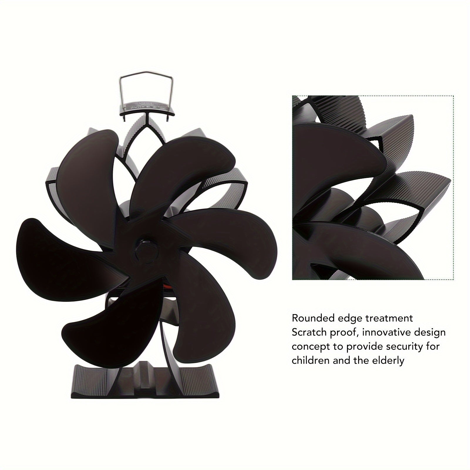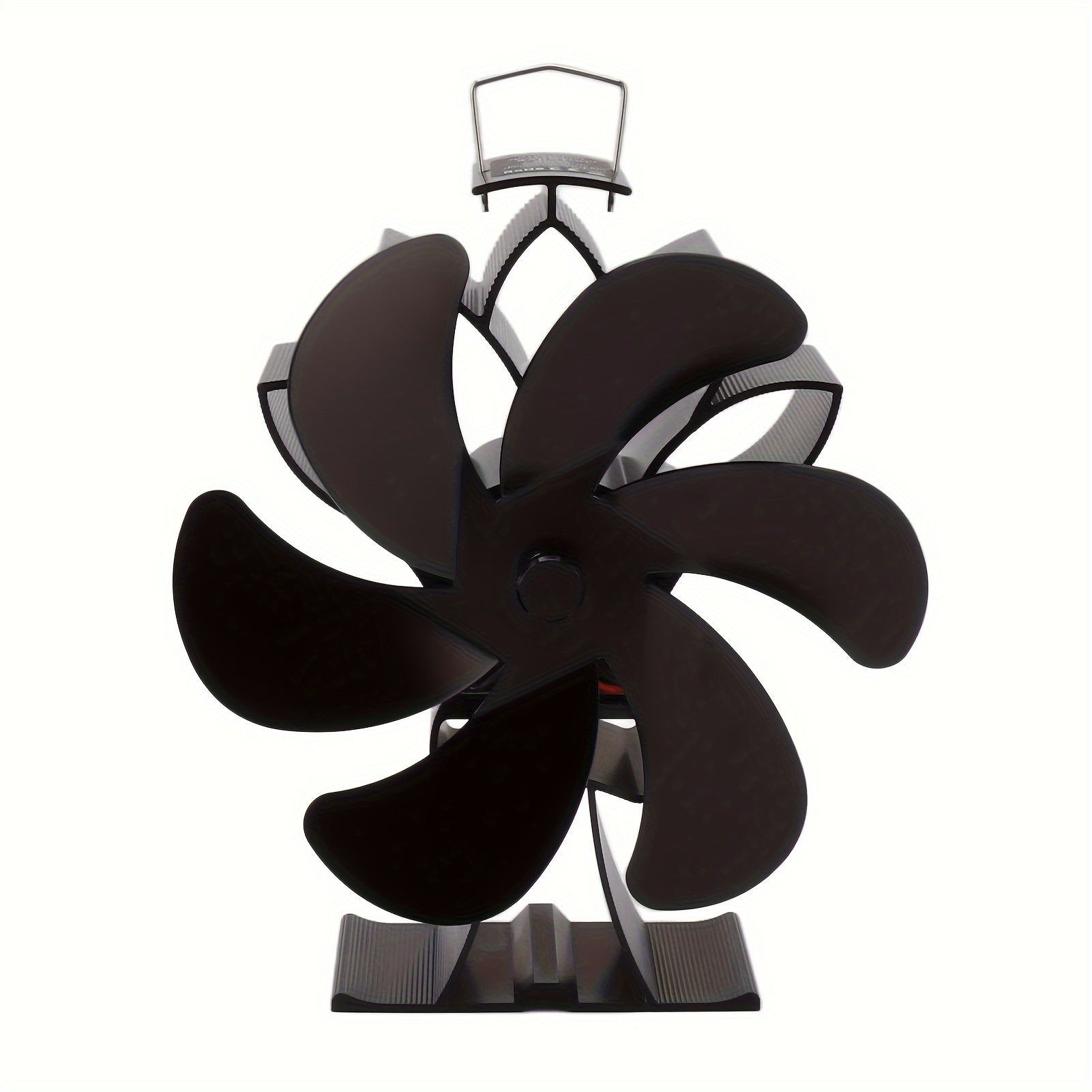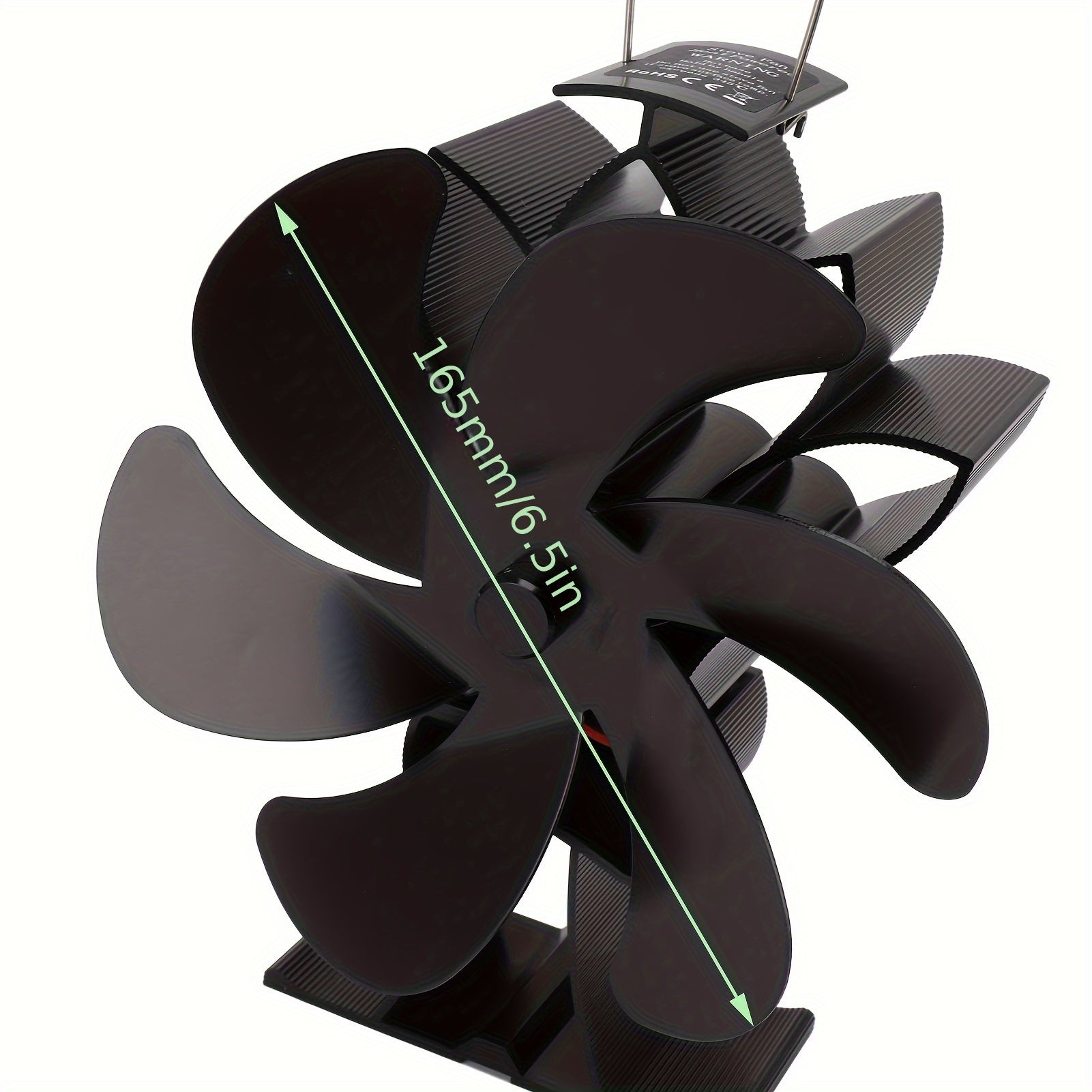 Issiqlik bilan ishlaydigan pechka ventilyatori, 6 ta alyuminiy pichog'i bilan, past shovqin uchun, uy log'li pechka uchun mos, qora rang, uy jihozi