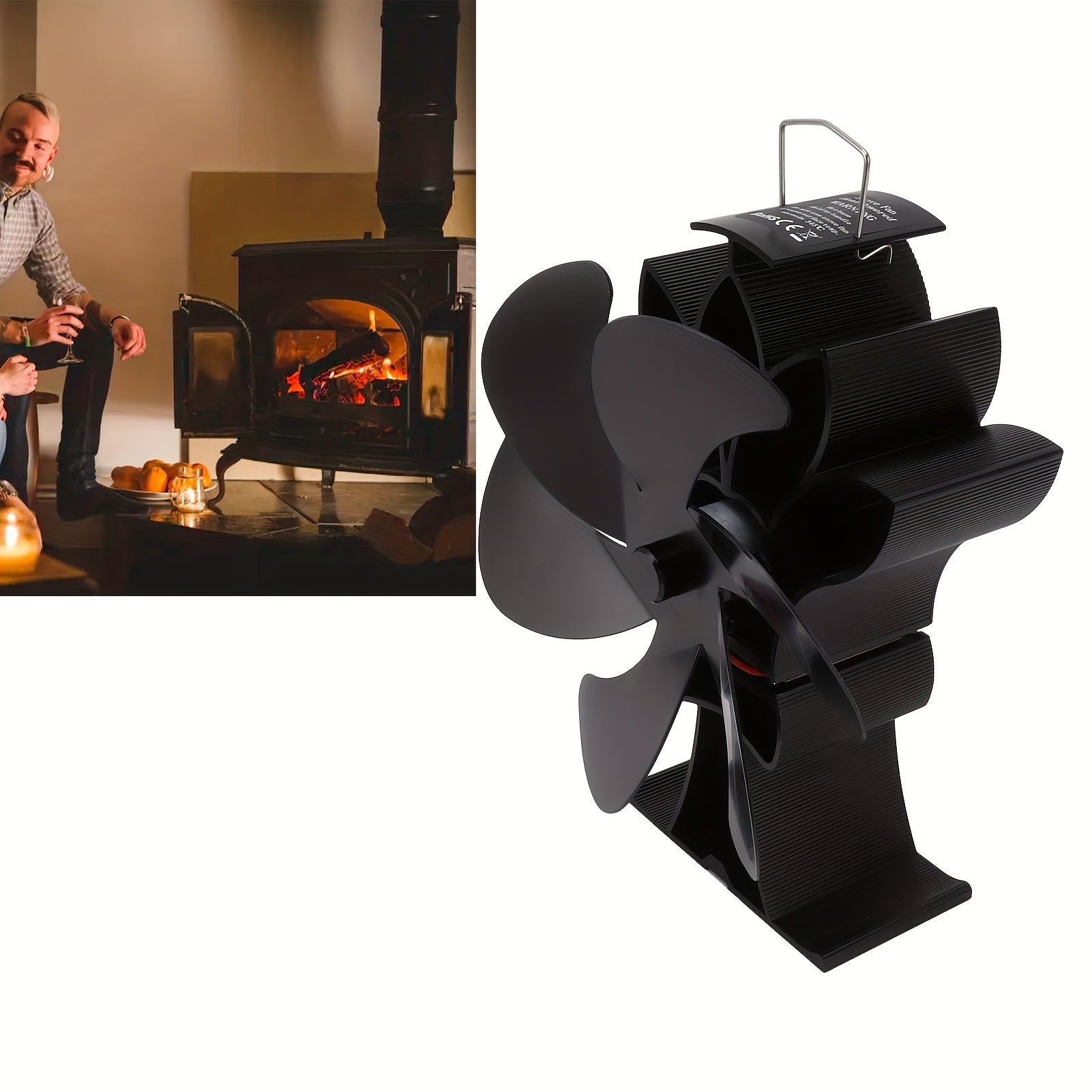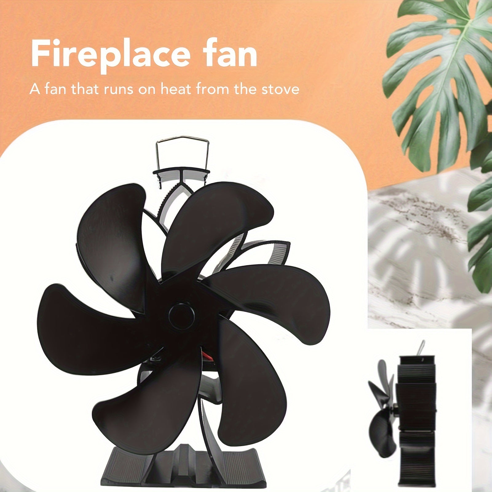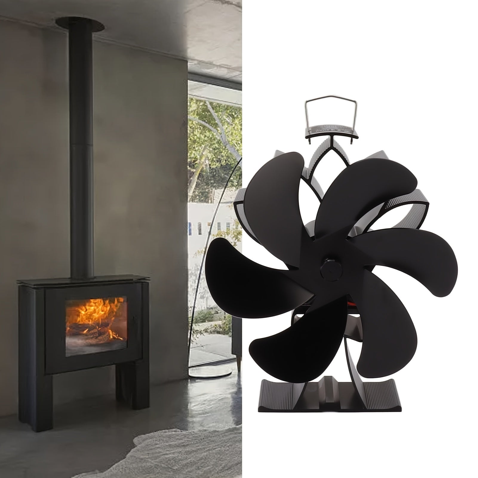 Issiqlik bilan ishlaydigan pechka ventilyatori, 6 ta alyuminiy pichog'i bilan, past shovqin uchun, uy log'li pechka uchun mos, qora rang, uy jihozi
