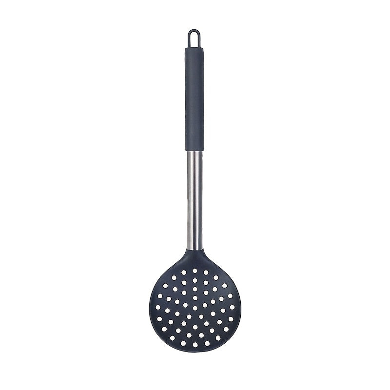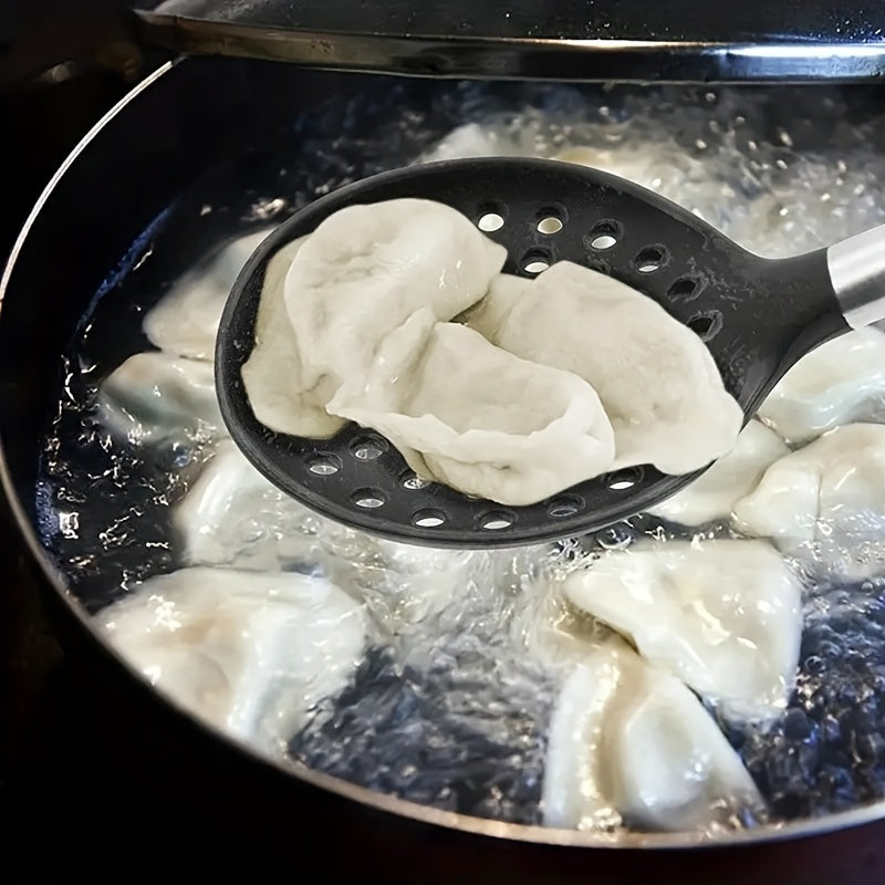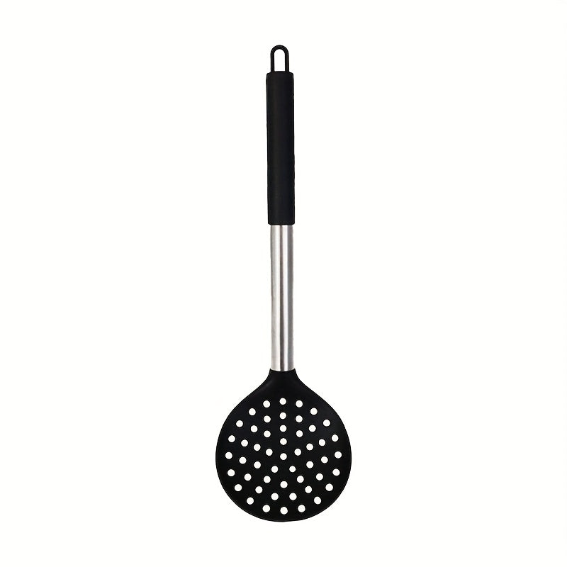 Issiqlikka chidamli silikon teshikli qoshiq, zanglamaydigan po'latdan yasalgan tutqich, BPA-siz, pishirish va xizmat ko'rsatish uchun, 1 dona