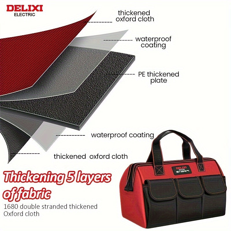 Keng og'zli asboblar uchun og'ir yuk ko'taruvchi ko'p cho'ntakli asbob saqlash sumkasi, asboblarni oson tashkil etish uchun bir nechta qatlamlarga ega (33.02 sm x 35.56 sm x 40.64 sm)