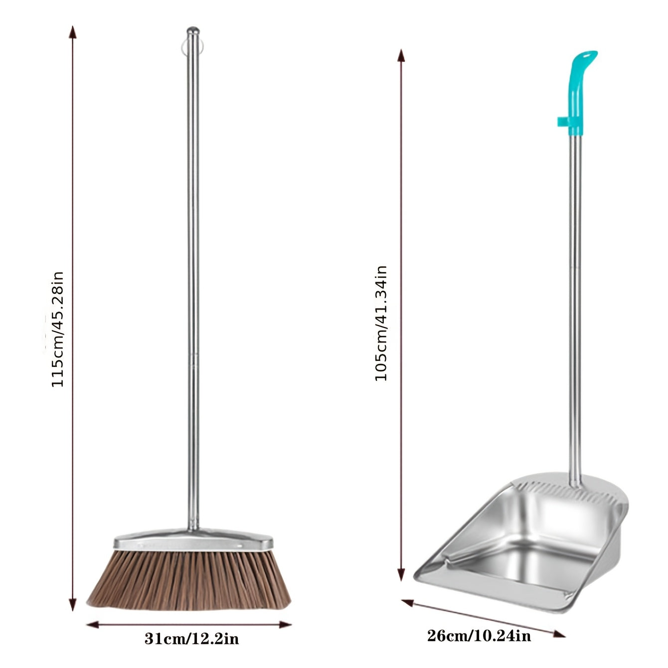 Og'ir yuk ko'taruvchi zanglamaydigan po'latdan yasalgan supurgi va chang to'plagich to'plami - uzoq muddatli, oddiy parvarish qilish uchun turli sohalarda, masalan, oshxona, yotoqxona, yashash xonasi va ochiq muhitlarda uy tozalash uchun.