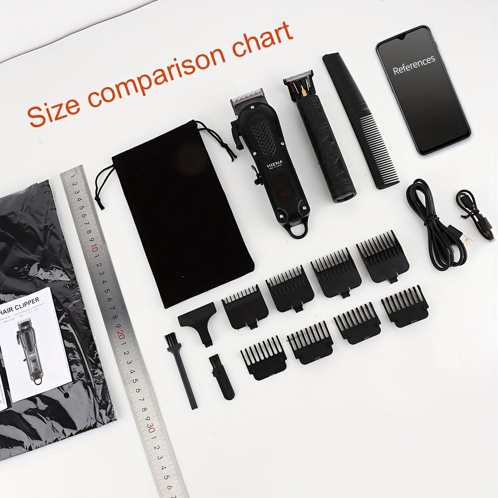 HIENA erkaklar uchun ikki qismli elektr soch kesgich, raqamli ko'rsatkich va simsiz USB o'yma qaychi bilan, otalar kuni yoki bayramlarda erkaklar uchun ideal sovg'a.