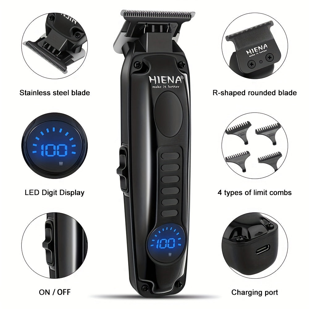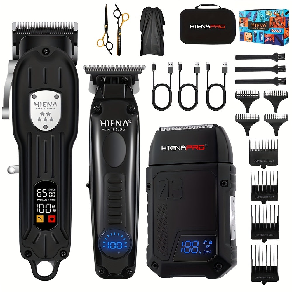 Hiena Professional erkaklar uchun soch kesish mashinasi 3-burchakli to'plam USB zaryadlash bilan