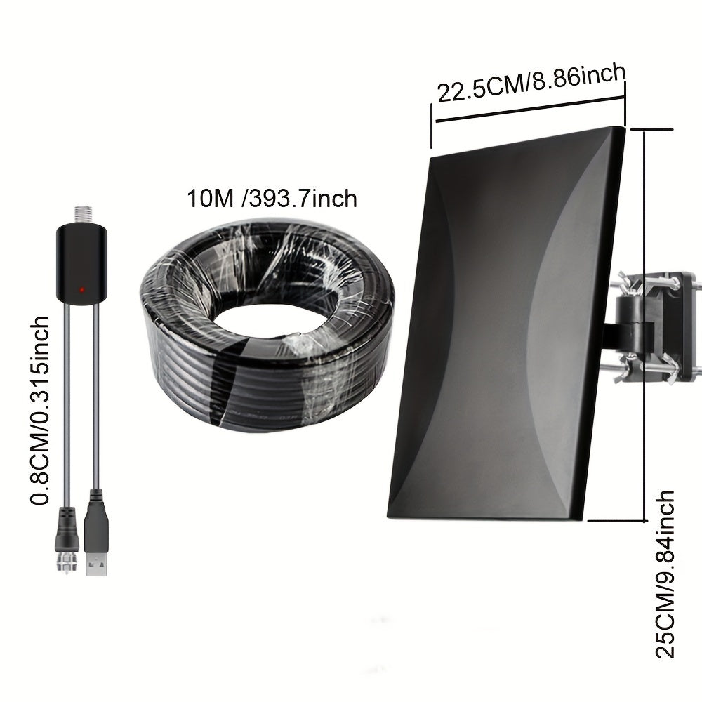 150+ mil masofaga ega, 4K/1080P qo‘llab-quvvatlaydigan va oson o‘rnatiladigan yuqori aniqlikdagi ochiq TV antennasi. Yuqori kuchlanishli amplifikatör va 10.06 metrli koaksial kabelni o‘z ichiga oladi.
