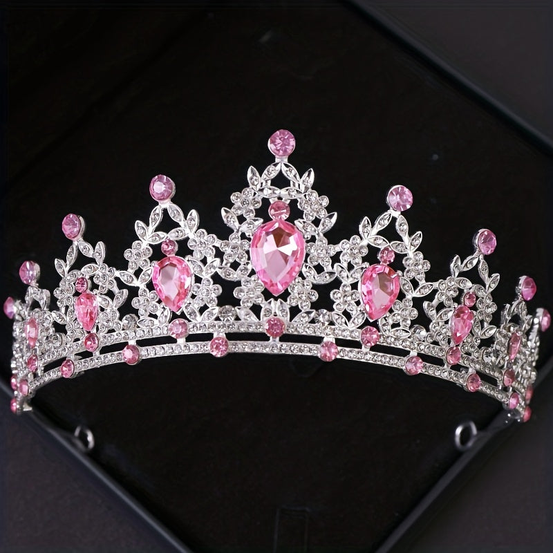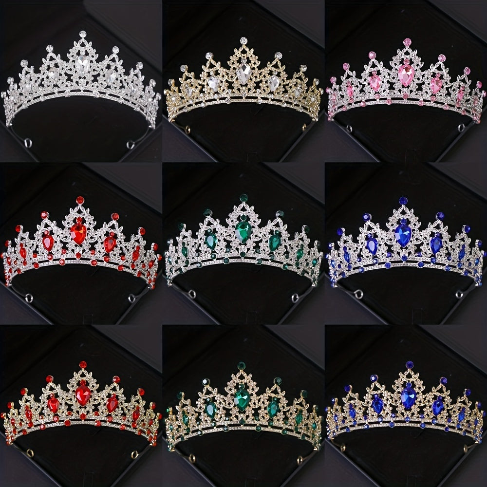 To'y libosi uchun rang-barang rhinestone taxtasi, malika, qizlar partiyasi soch aksessuarlari