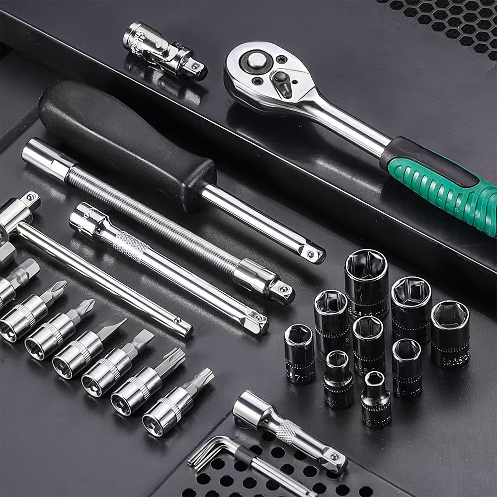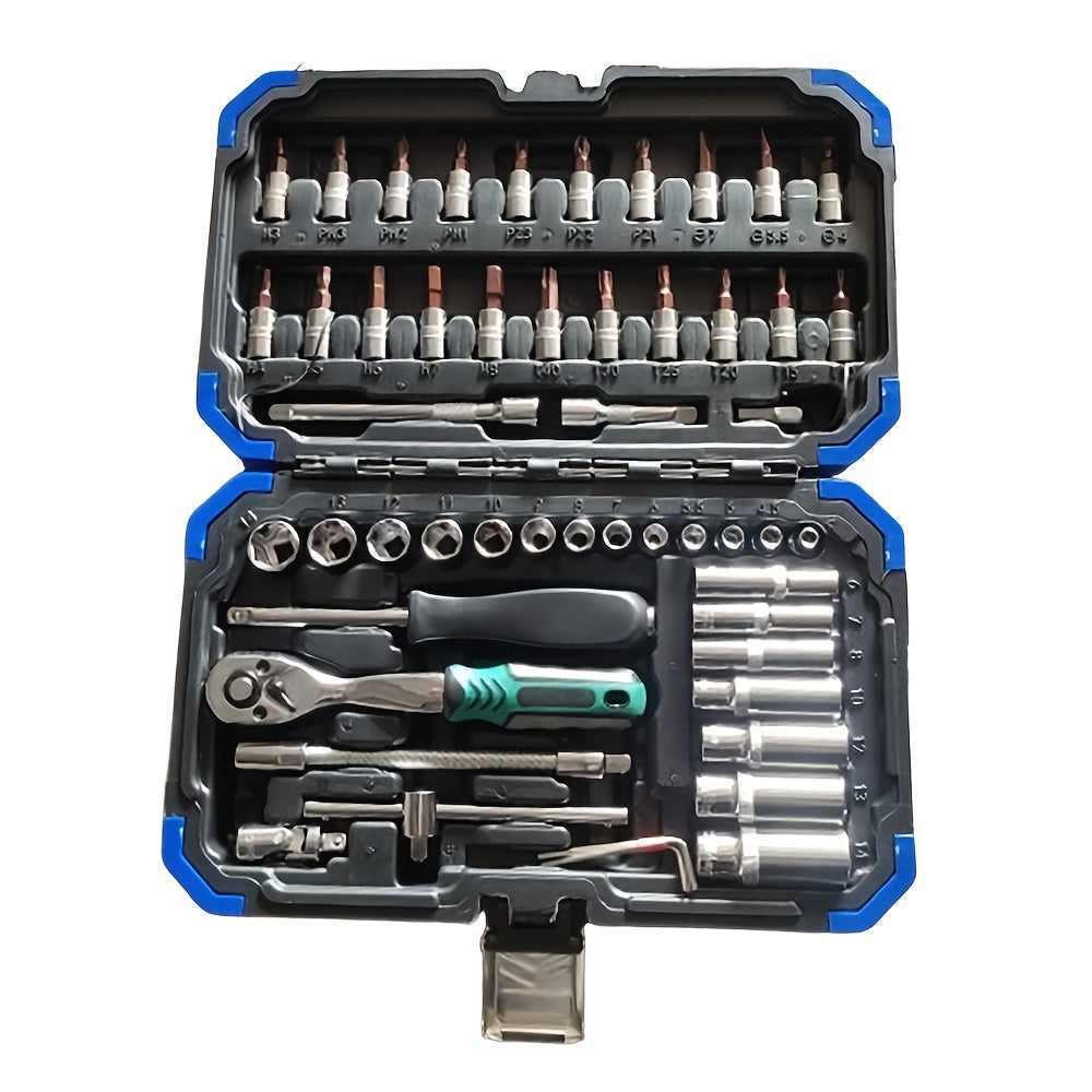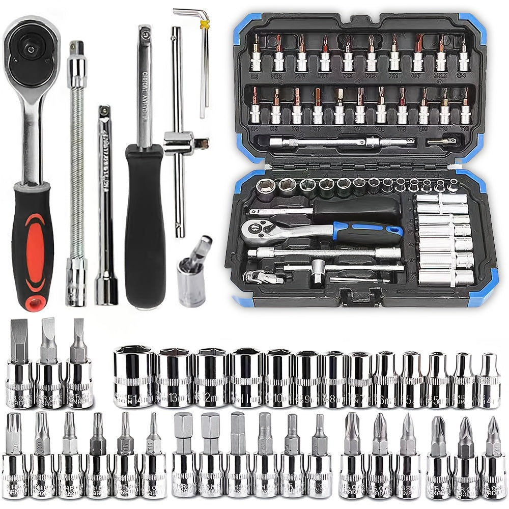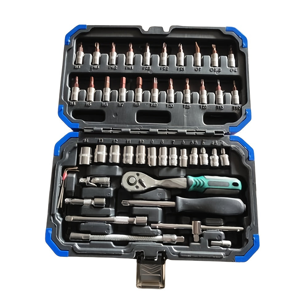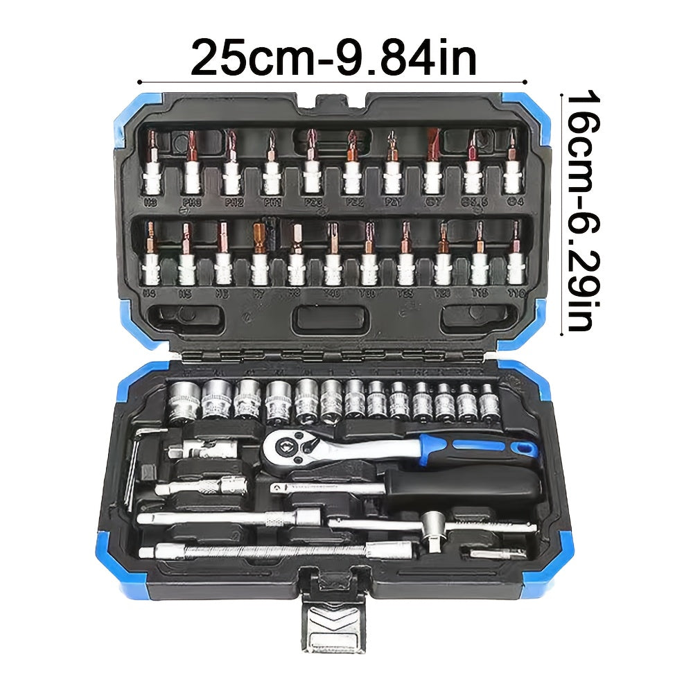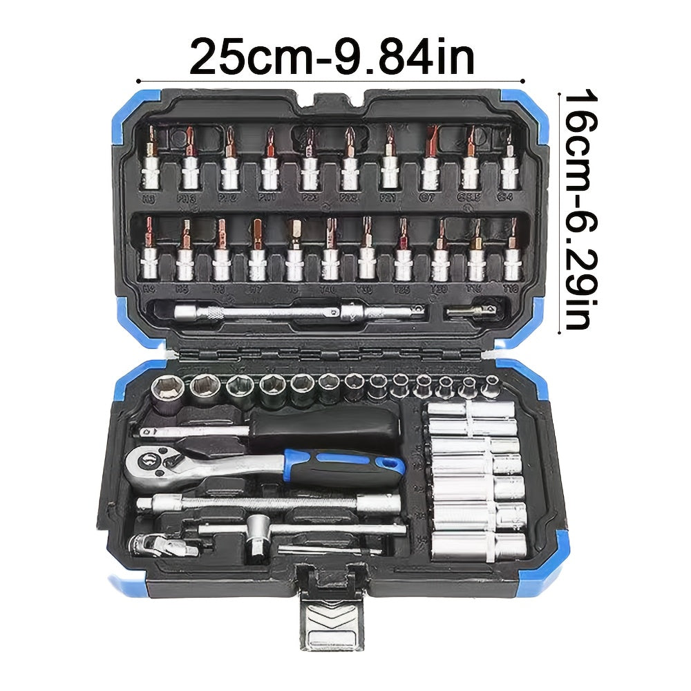 Yuqori darajadagi professional 53 va 46 dona 1/4 dyuymli quvvat asboblari to'plami avtomobil va uy ta'miri uchun, ratchet kalit, metrik qopqoq va saqlash qutisi bilan uzatma tayoqchasi bilan birga.